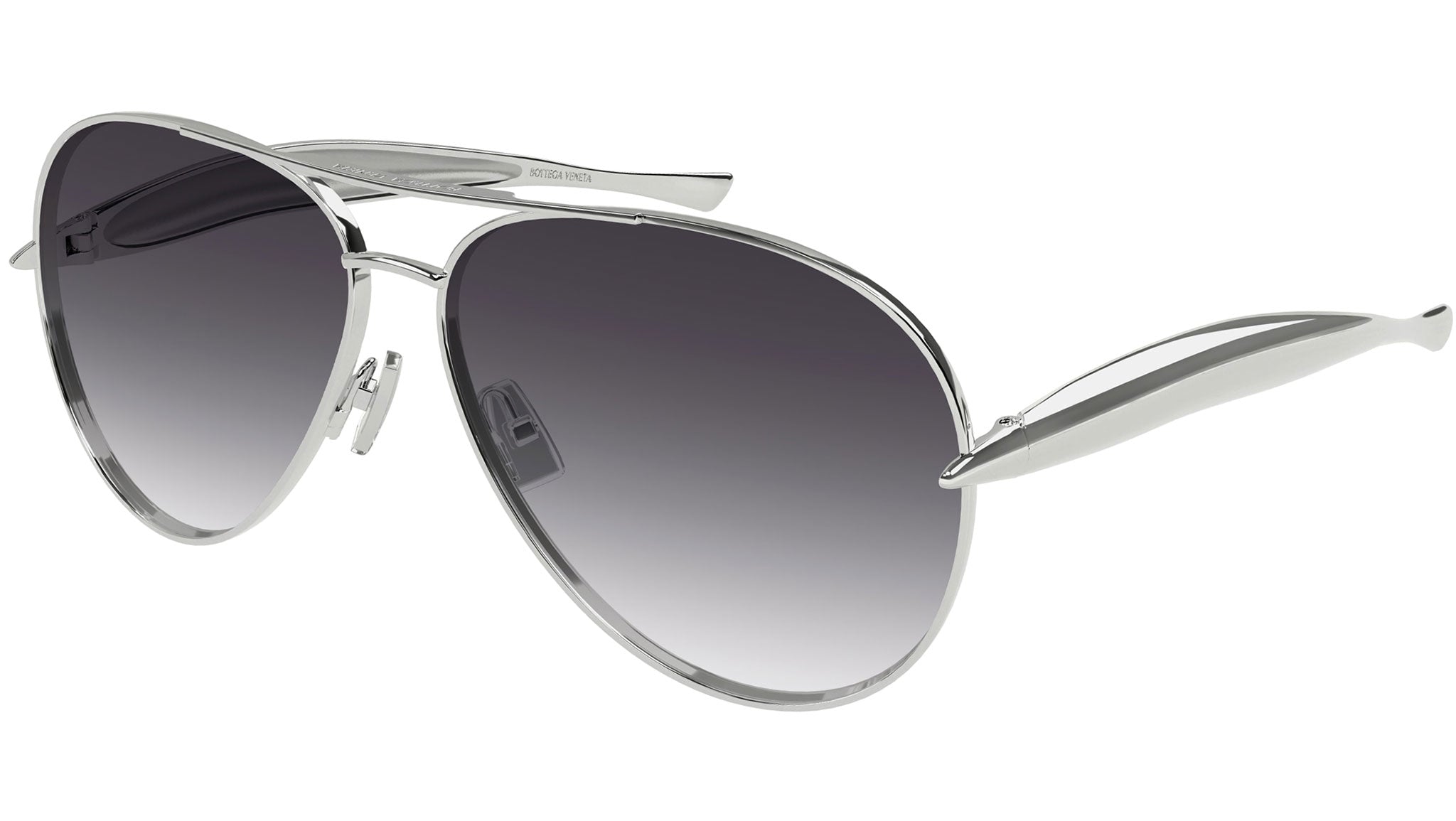 Occhiali da sole Bottega Veneta BV1305S 008 unisex con montatura aviatore in metallo argento lucido e lenti grigio sfumato. Linea: Unapologetic. Codice modello: BV1305S. Codice colore: 008. Made in Japan. Rivenditore autorizzato Bottega Veneta online. Gli occhiali vengono consegnati con custodia e accessori originali e sono coperti dalla garanzia ufficiale di 12 mesi del produttore.