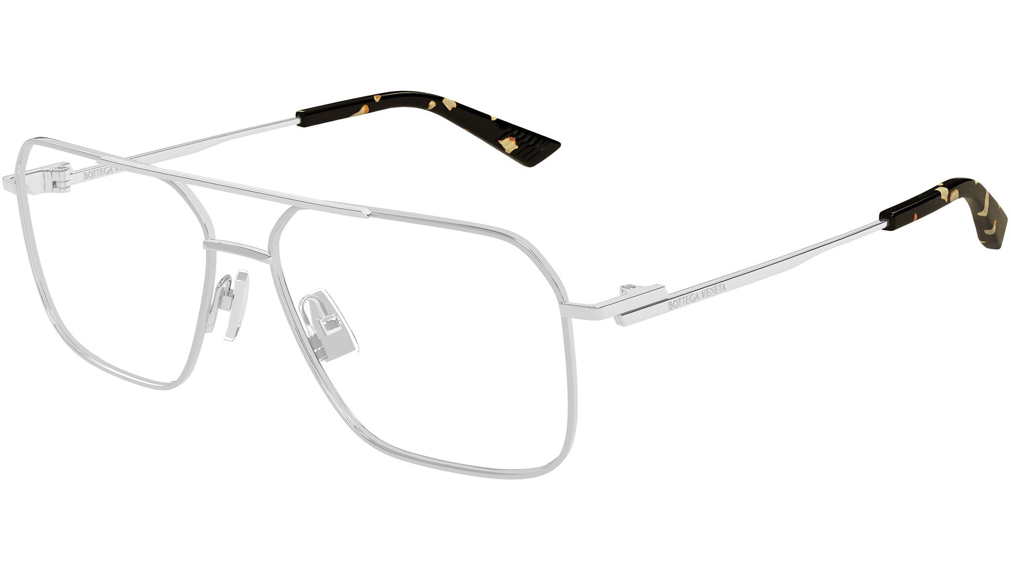 Occhiali da vista Bottega Veneta BV1384O 002 uomo con montatura aviatore in metallo argento lucido e lenti demo. Linea: Ribbon. Codice modello: BV1384O. Codice colore: 002. Made in Italy. Rivenditore autorizzato Bottega Veneta online. Gli occhiali vengono consegnati con custodia e accessori originali e sono coperti dalla garanzia ufficiale di 12 mesi del produttore.
