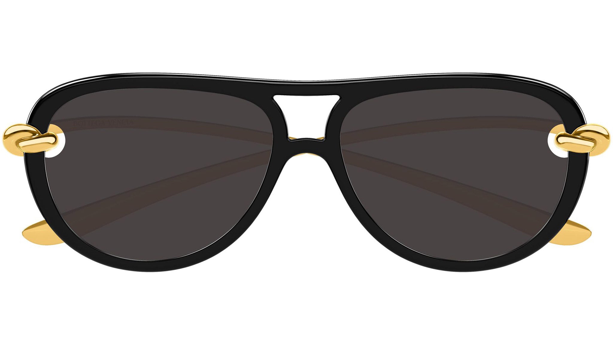 Occhiali da sole Bottega Veneta BV1418S 005 donna con montatura aviatore in inietatto nero lucido e lenti grigio tinta unita. Linea: Signature Icons. Codice modello: BV1418S. Codice colore: 005. Made in Japan. Rivenditore autorizzato Bottega Veneta online. Gli occhiali vengono consegnati con custodia e accessori originali e sono coperti dalla garanzia ufficiale di 12 mesi del produttore.