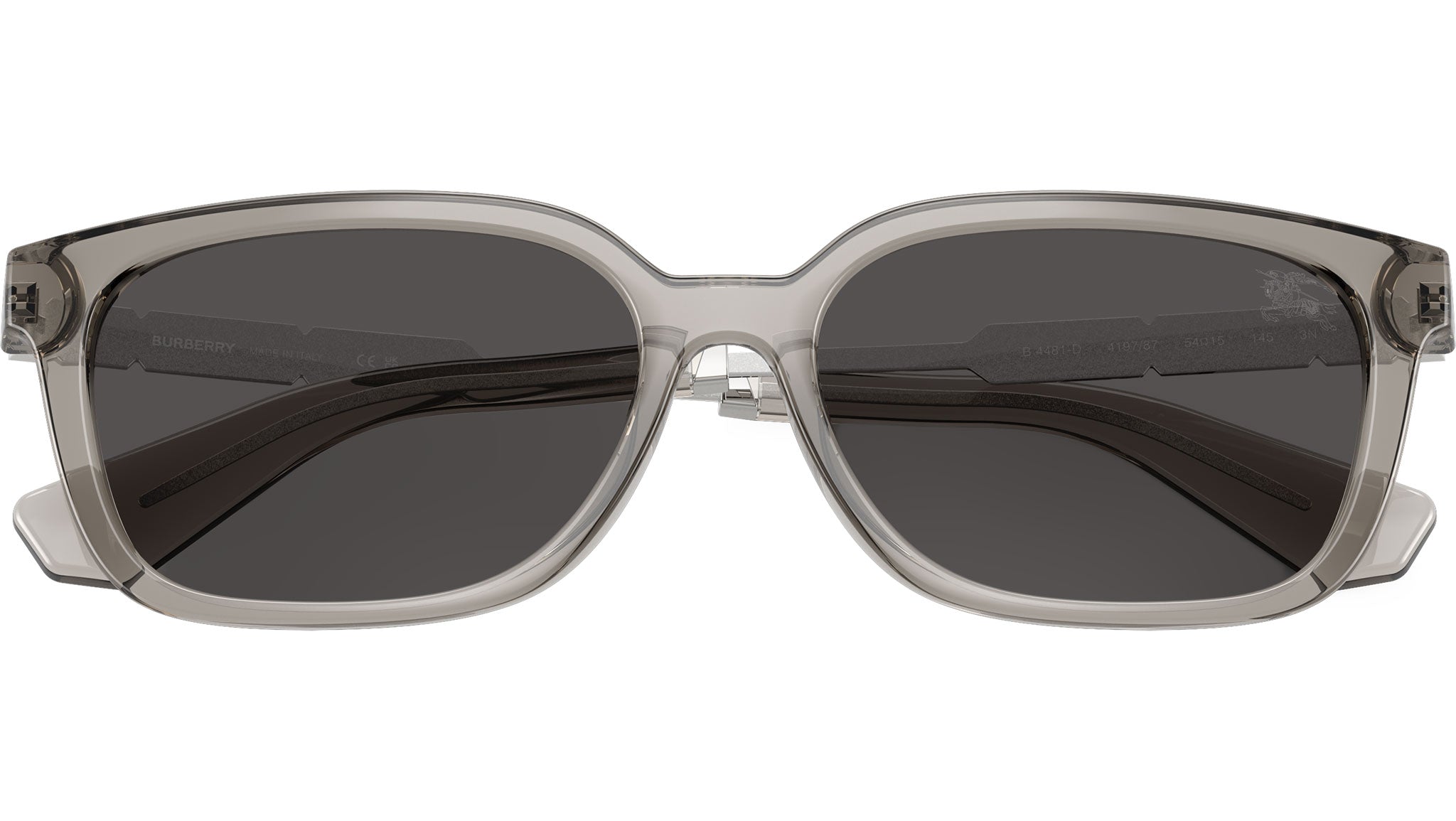 Occhiali da sole Burberry donna modello BE4481D 419787 con montatura full rim in iniettato grigio e lenti in bio poliammide grigio scuro. Vestibilità a ponte basso. Fitting consigliato: L. Linea: Engraved Check. Codice modello: 0BE4481D. Codice colore: 419787. Rivenditore autorizzato online Burberry. Gli occhiali includono la custodia e gli accessori originali e sono coperti da una garanzia globale di 12 mesi.