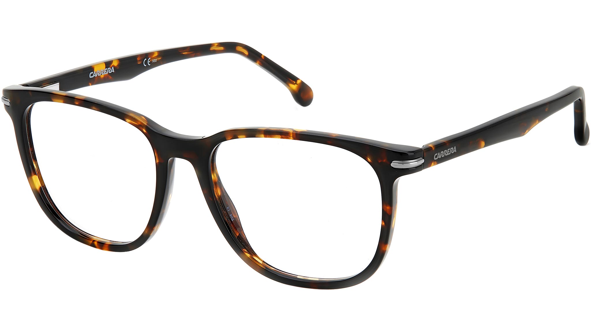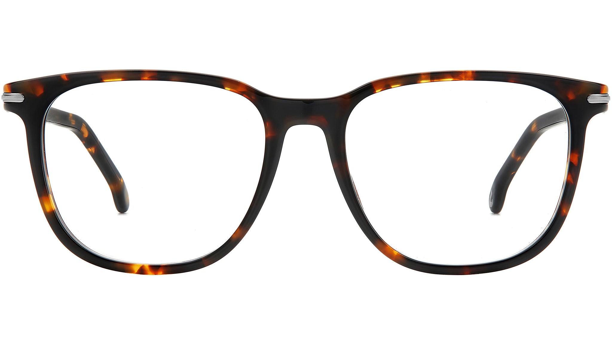 Occhiali da vista Carrera modello 308 colore 086 havana. Un’intramontabile forma squadrata per questi occhiali da vista della collezione più elegante di Carrera. Sulla montatura in acetato spiccano gli inserti metallici, che richiamano una “C” orizzontale e collegano il frontale alle aste a pinna: elementi propri della storia Carrera. Il modello veste alla perfezione grazie alle cerniere flessibili intercambiabili. La palette colori è classica, disponibile anche nella versione con aste multistrato per un effetto cromatico che non sbaglia mai.