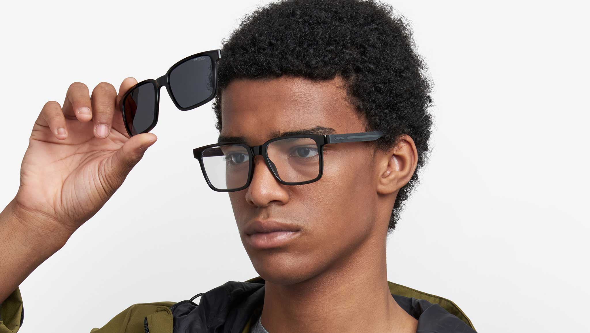 Occhiali da sole Carrera CA 8069/CS 08A M9 Clip uomo con montatura rettangolare in Injected nero grigio e lenti demo. Chi predilige uno stile pratico non potrà che apprezzare un occhiale da vista. Carrera propone una forma squadrata in poliammide iniettata da sfoggiare sugli outfit quotidiani. Da notare i dettagli gommati sulle aste: effetto sporty garantito! L’occhiale è accompagnato da lenti da sole polarizzate clip-on pieghevoli. Si agganciano al frontale grazie a dei magneti, con un semplice gesto, per guardarsi intorno con disinvoltura anche nelle giornate più assolate. Linea: Sport. Codice modello: 207604. Codice colore: 08A M9. Rivenditore autorizzato Carrera online. Gli occhiali vengono consegnati con custodia e accessori originali e sono coperti dalla garanzia ufficiale di 12 mesi del produttore.