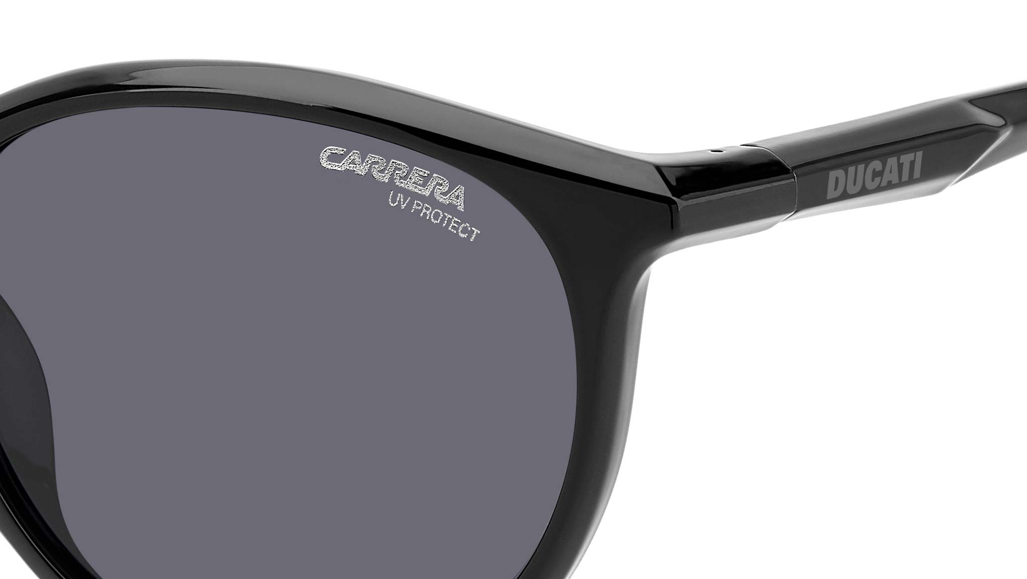 Occhiali da sole Carrera Ducati modello CarDuc 035/S colore 807 IR black. Scendono in pista con stile questi occhiali da sole Carrera | Ducati. Il frontale pantos con ponte a chiave sta benissimo alla maggior parte dei volti, anche alla donna che vuole osare un look sportivo. Le aste omaggiano il design della Panigale, mentre i volumi ridotti e i terminali in gomma lucida facilitano l’utilizzo sotto al casco. Guardare lontano è facile con le lenti graduate, anche specchiate o polarizzate.