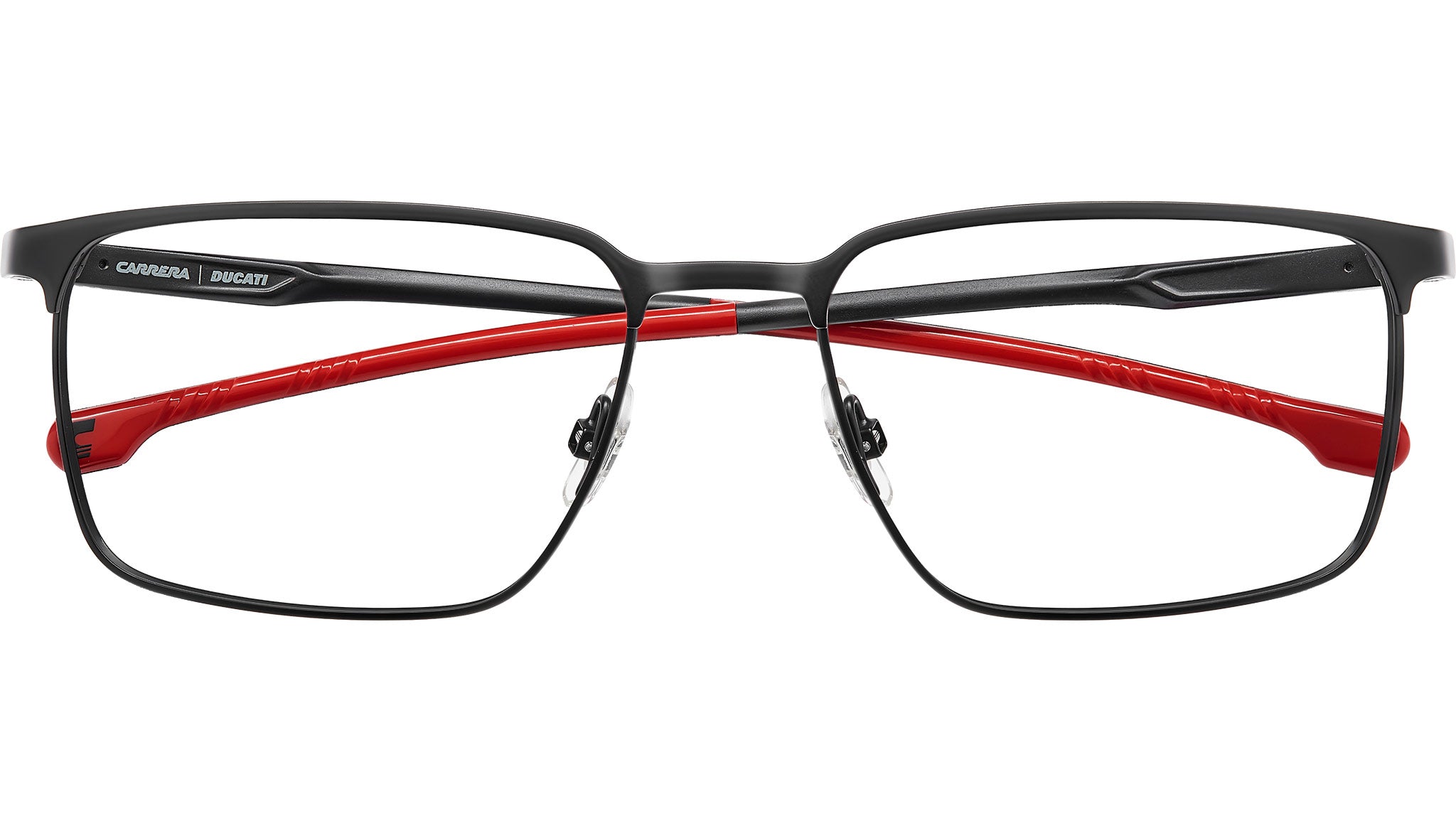 Occhiali da vista Carrera CARDUC 054 003 uomo con montatura rettangolare in metallo nero opaco e lenti demo. Che spettacolo questi occhiali da vista Carrera | Ducati! Impossibile sorvolare sulla qualità tecnica della costruzione: frontale in acciaio inossidabile con naselli regolabili, aste in acciaio con cerniere flessibili. Tutto è votato al comfort, ma anche il design non scherza e celebra le linee della Panigale, la moto icona di Ducati. Così l’emozione del paddok si indossa ogni giorno. Linea: Performante. Codice modello: 109363. Codice colore: 003. Rivenditore autorizzato Carrera online. Gli occhiali vengono consegnati con custodia e accessori originali e sono coperti dalla garanzia ufficiale di 12 mesi del produttore.