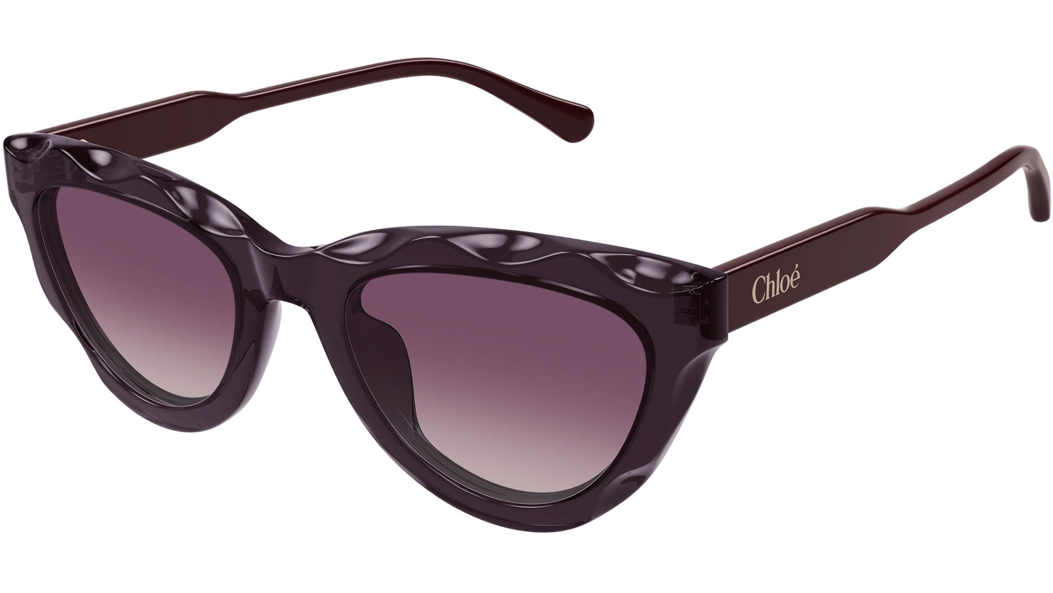 Occhiali da sole Chloé CH0294S 002 donna con montatura cat eye in acetato riciclato malva scuro trasparente e lenti doppia sfumatura bordeaux / grigio chiaro. Linea: Chloé. Codice modello: CH0294S. Codice colore: 002. Made in Italy. Rivenditore autorizzato Chloé online. Gli occhiali vengono consegnati con custodia e accessori originali e sono coperti dalla garanzia ufficiale di 12 mesi del produttore.