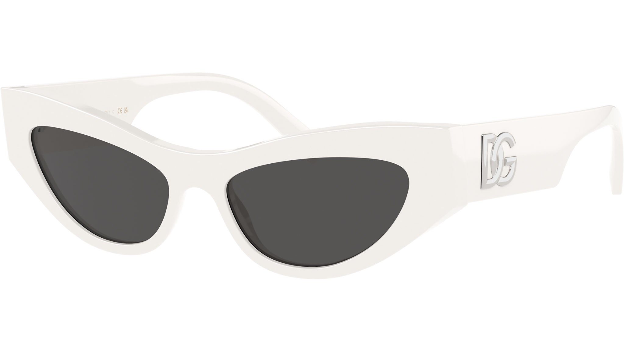 Occhiali da sole Dolce&Gabbana modello DG 4450 linea Dna codice colore 331287 bianco in acetato forma cat eye con lenti color grigio scuro.