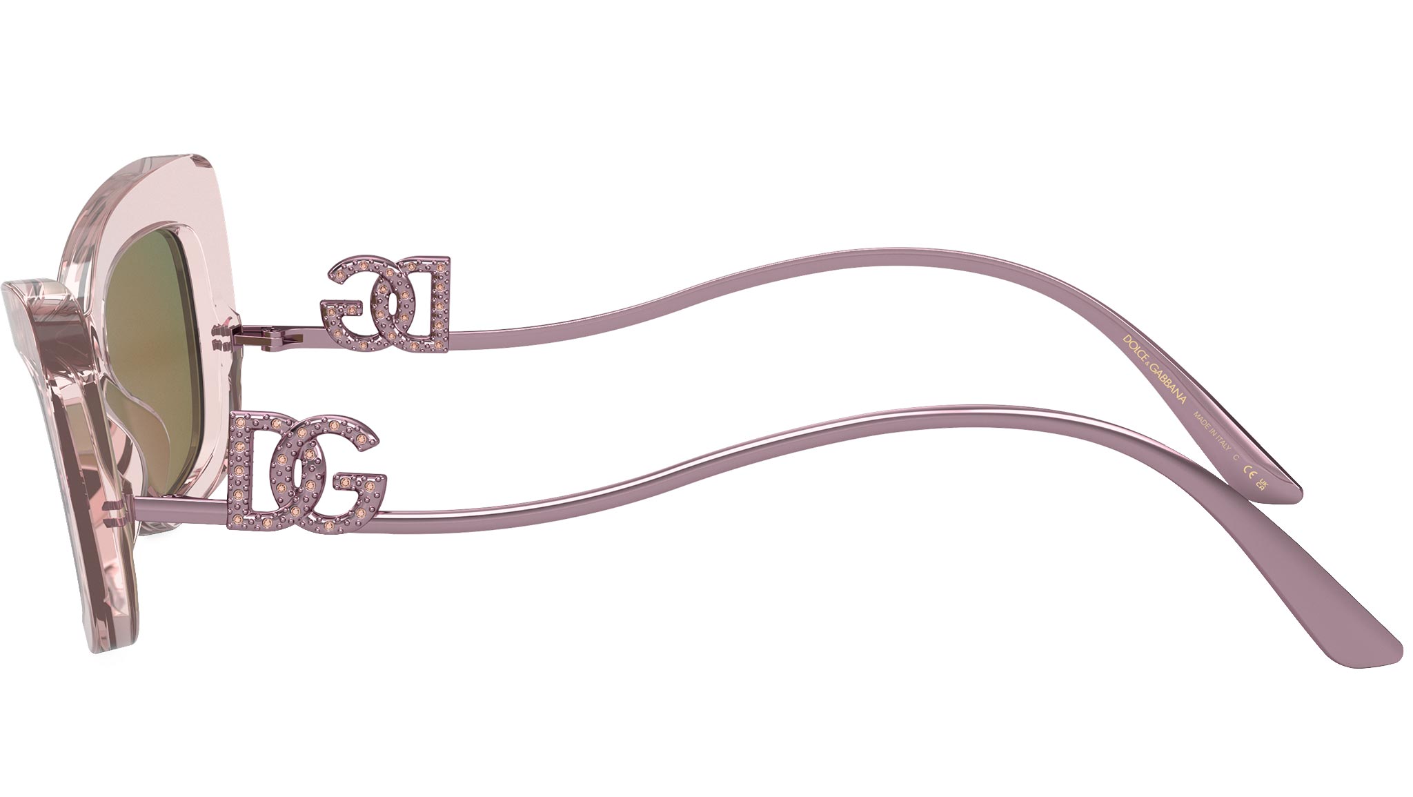 Occhiali da sole Dolce & Gabbana donna, modello 4467B con montatura rosa trasparente full rim in acetato e lenti base 4 in nylon specchio marrone chiaro rosa. Vestibilità a ponte alto. Linea: Statement. Codice modello: DG4467B. Codice colore: 31486X. Taglia: S adatta a un viso piccolo. Rivenditore online autorizzato Dolce & Gabbana. Gli occhiali vengono forniti con la custodia e gli accessori originali e sono coperti da una garanzia globale di 12 mesi.