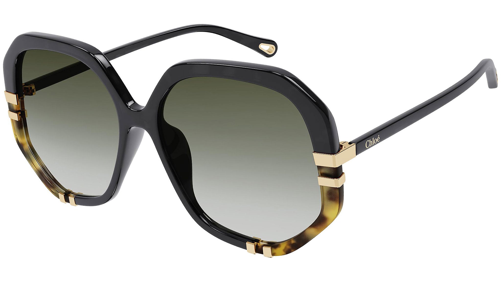 Occhiali da sole Chloé CH0105S 006 donna con montatura geometrica in bio acetato nero lucido e lenti verde sfumato. Linea: Chloé. Codice modello: CH0105S. Codice colore: 006. Made in Italy. Rivenditore autorizzato Chloé online. Gli occhiali vengono consegnati con custodia e accessori originali e sono coperti dalla garanzia ufficiale di 12 mesi del produttore.