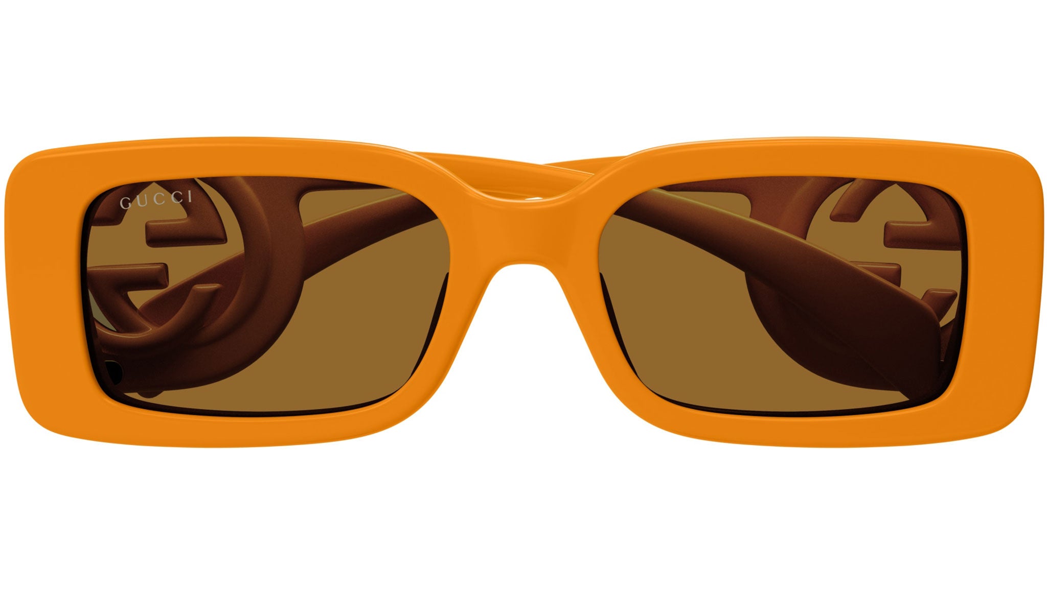 Occhiali da sole Gucci linea GG Logo modello GG1325S aviatore in iniettato codice colore 008 arancione solido lucido con aste arancione e lenti color marrone ruggine solido.