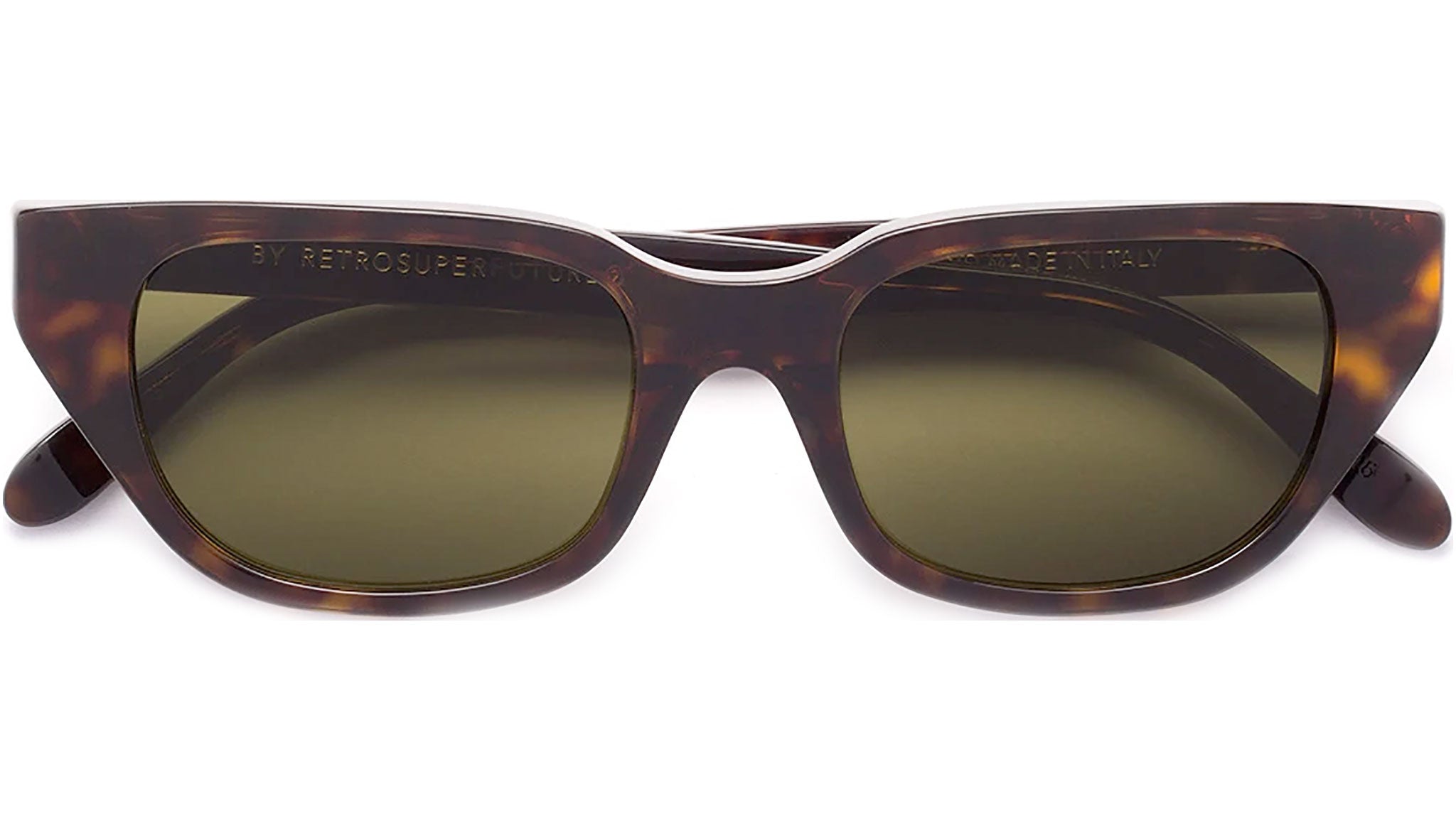 This is a re-edition of Cento, an iconic Super silhouette. The model features a wide horizontal shape with a low-riding and fast design, sturdy rims and low nose-bridge. This version comes with a vibrant Havana acetate with bottle green lenses.