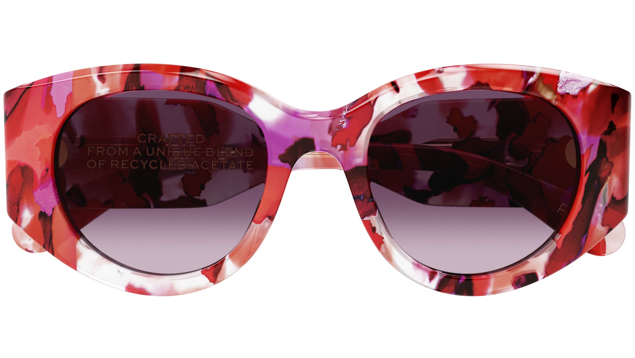Occhiali da sole Chloé CH0251S 007 donna con montatura pantos in acetato riciclato rosso pop e lenti sfumato malva. Linea: Chloé. Codice modello: CH0251S. Codice colore: 007. Made in Italy. Rivenditore autorizzato Chloé online. Gli occhiali vengono consegnati con custodia e accessori originali e sono coperti dalla garanzia ufficiale di 12 mesi del produttore.
