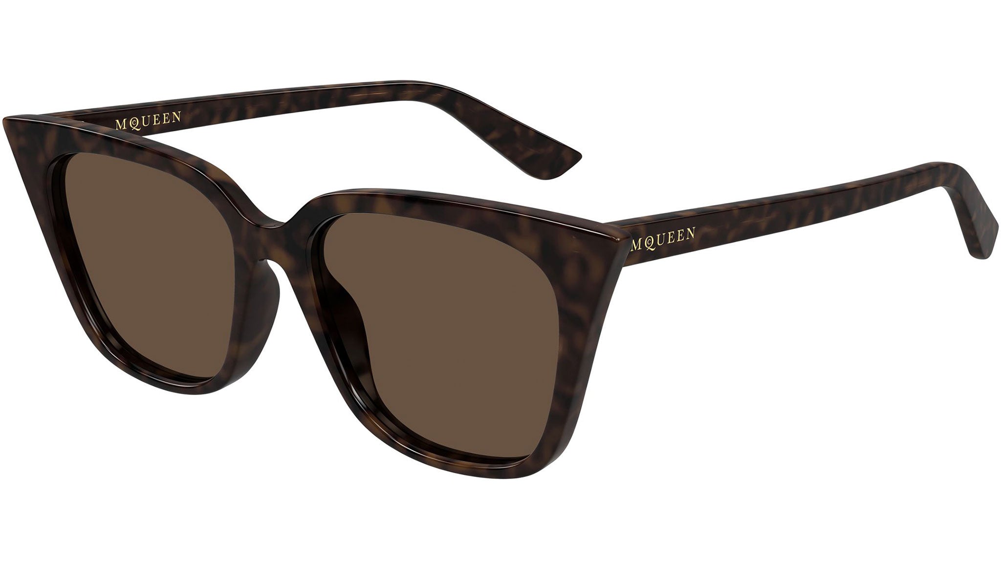 Occhiali da sole Alexander McQueen AM0556S 002 donna con montatura cat eye in acetato riciclato avana scuro lucido e lenti marrone tinta unita. Linea: Logo. Codice modello: AM0556S. Codice colore: 002. Made in Italy. Rivenditore autorizzato Alexander McQueen online. Gli occhiali vengono consegnati con custodia e accessori originali e sono coperti dalla garanzia ufficiale di 12 mesi del produttore.