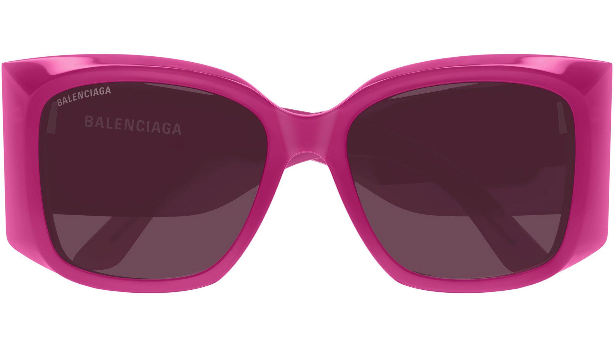 Occhiali da sole Balenciaga BB0443S 005 donna con montatura butterfly in acetato riciclato fucsia opale intenso lucido e lenti viola scuro solido. Linea: Everyday. Codice modello: BB0443S. Codice colore: 005. Made in Italy. Rivenditore autorizzato Balenciaga online. Gli occhiali vengono consegnati con custodia e accessori originali e sono coperti dalla garanzia ufficiale di 12 mesi del produttore.