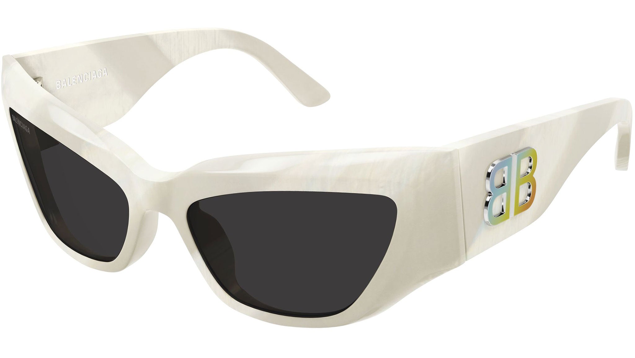 Occhiali da sole Balenciaga BB0444S 003 donna con montatura cat eye in acetato riciclato avorio iridescente madreperla lucido e lenti grigio solido. Linea: Everyday. Codice modello: BB0444S. Codice colore: 003. Made in Italy. Rivenditore autorizzato Balenciaga online. Gli occhiali vengono consegnati con custodia e accessori originali e sono coperti dalla garanzia ufficiale di 12 mesi del produttore.