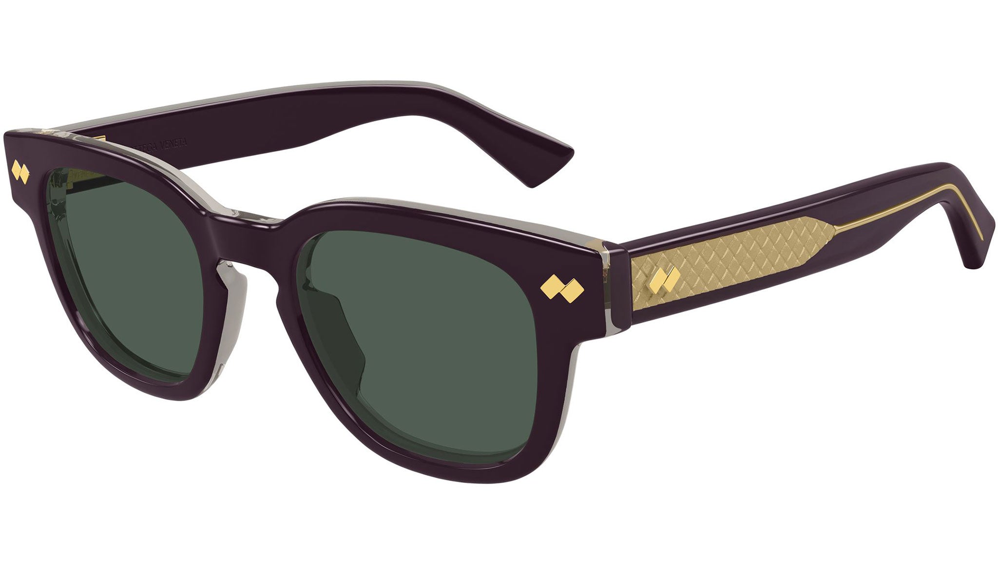 Occhiali da sole Bottega Veneta BV1441S 004 unisex con montatura pantos in acetato riciclato viola solido bilayer grigio trasparente e lenti verde tinta unita. Linea: Intrecciato. Codice modello: BV1441S. Codice colore: 004. Made in Japan. Rivenditore autorizzato Bottega Veneta online. Gli occhiali vengono consegnati con custodia e accessori originali e sono coperti dalla garanzia ufficiale di 12 mesi del produttore.