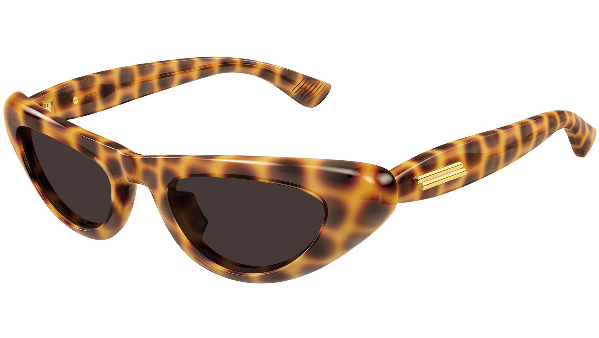 Occhiali da sole Bottega Veneta BV1450S 002 donna con montatura cat eye in acetato riciclato avana biondo maculato regolare lucido e lenti marrone tinta unita. Linea: Signature Icons. Codice modello: BV1450S. Codice colore: 002. Made in Italy. Rivenditore autorizzato Bottega Veneta online. Gli occhiali vengono consegnati con custodia e accessori originali e sono coperti dalla garanzia ufficiale di 12 mesi del produttore.