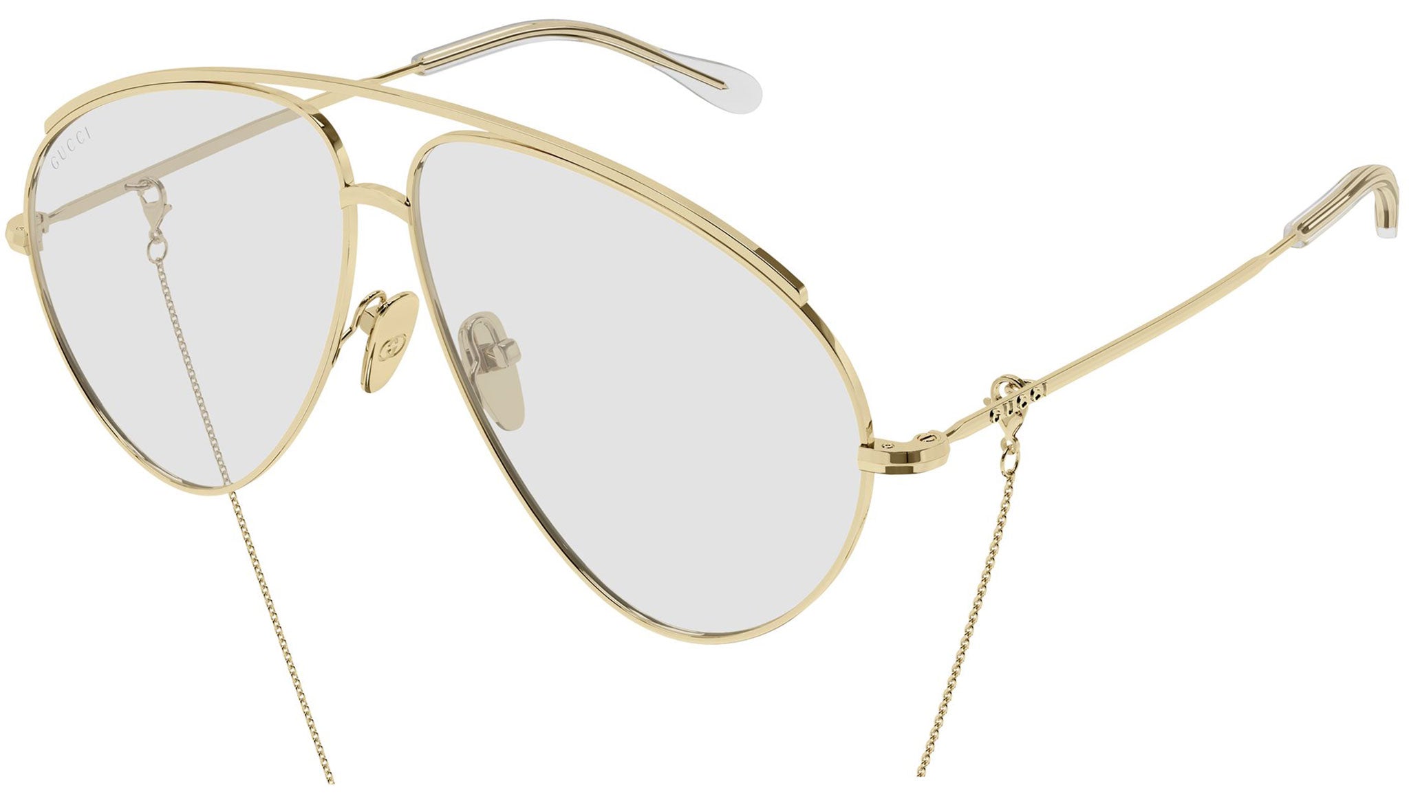 Occhiali da sole Gucci GG1654S 010 donna con montatura aviatore in metallo oro endura lucido e lenti trasparente in bio nylon. Linea: Fashion. Codice modello: GG1654S. Codice colore: 010. Made in Italy. Rivenditore autorizzato Gucci online. Gli occhiali vengono consegnati con custodia e accessori originali e sono coperti dalla garanzia ufficiale di 12 mesi del produttore.