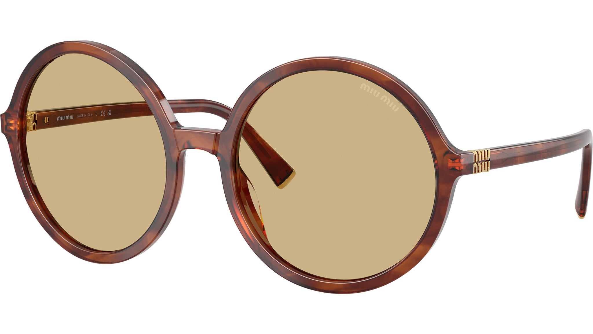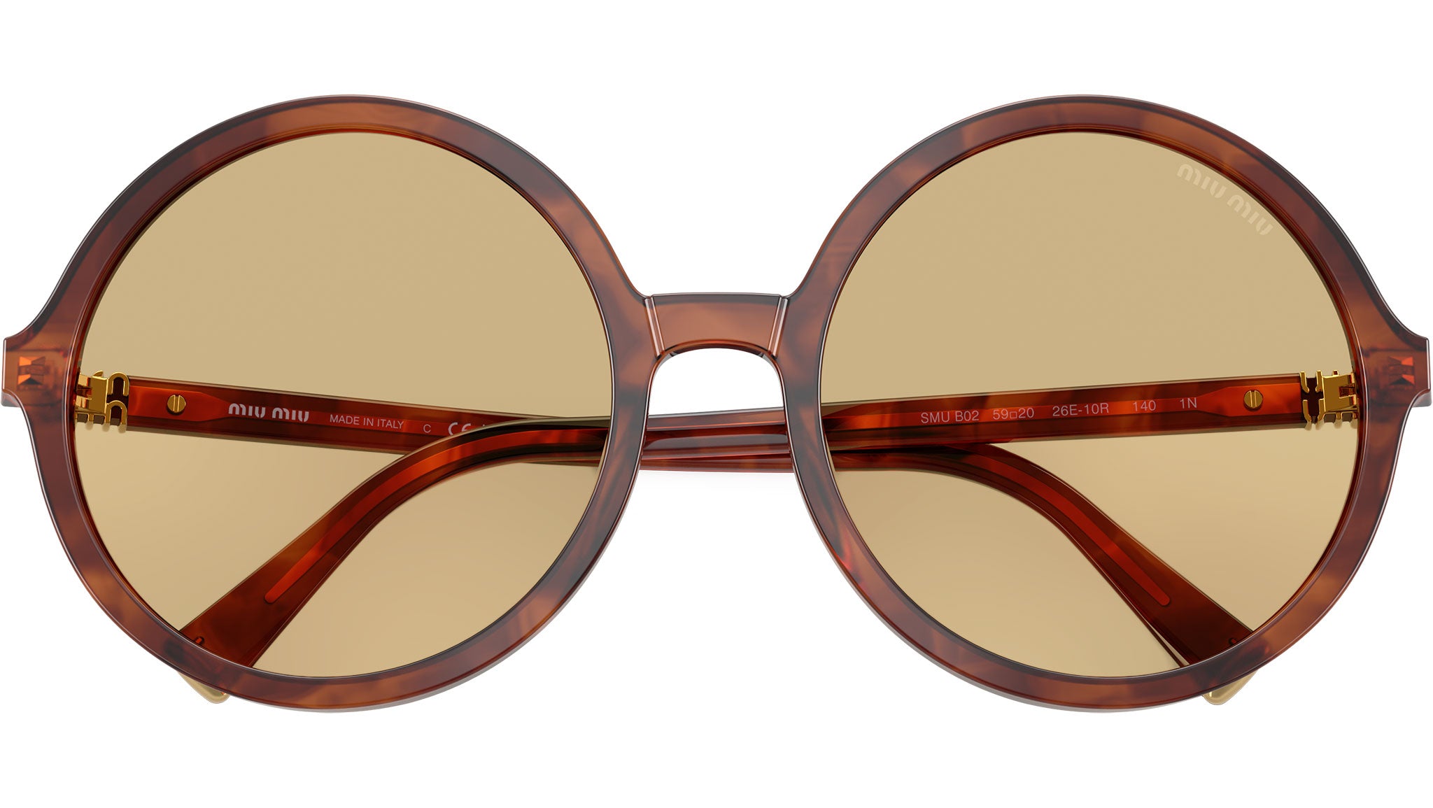 Occhiali da sole Miu Miu MU B02S 26E10R donna con montatura rotonda in acetato tabacco striato e lenti in bio poliammide color giallo. Vestibilità a ponte alto. Linea: Main Collection. Codice modello: 0MU B02S. Codice colore: 26E10R. Made in Italy. Rivenditore autorizzato Miu Miu online. Gli occhiali vengono consegnati con custodia e accessori originali e sono coperti dalla garanzia ufficiale di 12 mesi del produttore.
