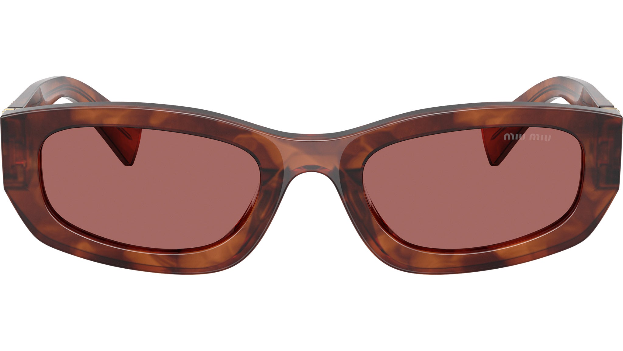Occhiali da sole Miu Miu MU B04S 26E80B donna con montatura geometrica in acetato tabacco striato e lenti in bio poliammide color violetto scuro. Vestibilità a ponte alto. Linea: Main Collection. Codice modello: 0MU B04S. Codice colore: 26E80B. Made in Italy. Rivenditore autorizzato Miu Miu online. Gli occhiali vengono consegnati con custodia e accessori originali e sono coperti dalla garanzia ufficiale di 12 mesi del produttore.
