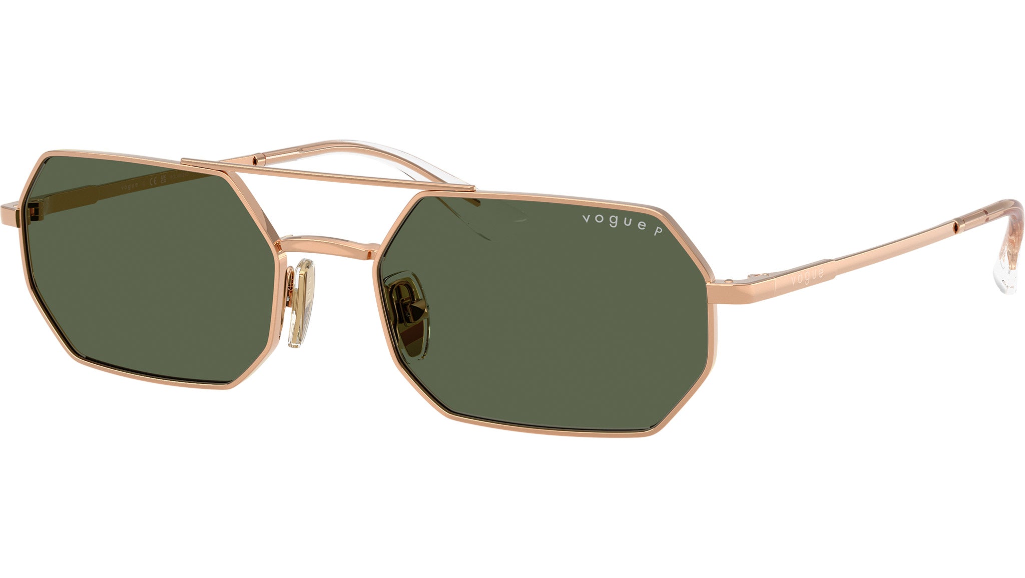 Occhiali da sole Vogue donna modello VO4329S 51529A con montatura geometrica in metallo oro rosa e lenti base 4 in policarbonato verde scuro polarizzato. Naselli regolabili. Linea: In Vogue. Codice Brand: 0VO4329S. Codice colore: 51529A. Rivenditore autorizzato online Vogue Eyewear. Ogni prodotto Vogue viene consegnato con astuccio originale e accessori ed è coperto da garanzia del produttore di 12 mesi.