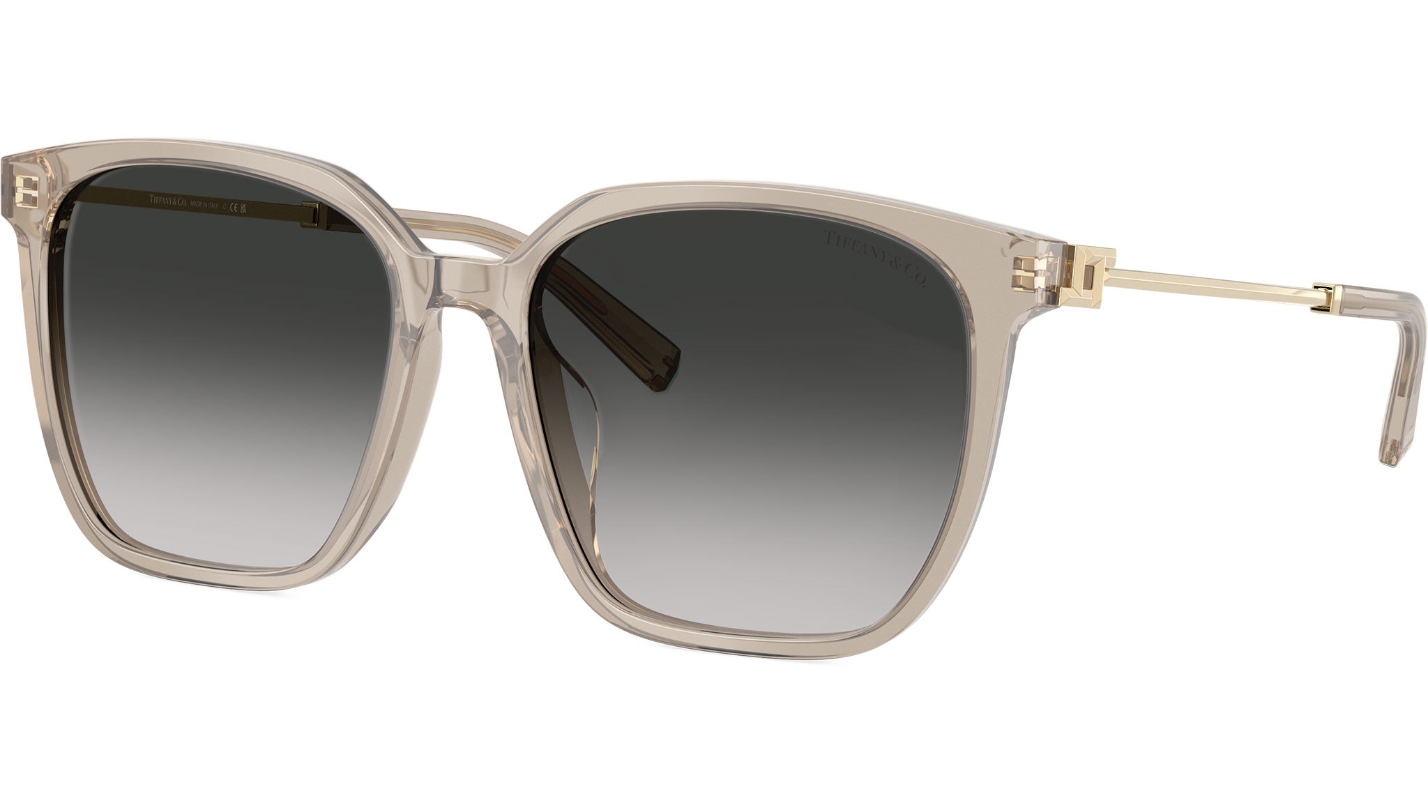 Occhiali da sole Tiffany donna modello TF4244D 82503C con montatura squadrata in acetato opale taupe e lenti in bio poliammide grigio sfumato base 4. Vestibilità a ponte basso. Linea: Icons. Codice Brand: 0TF4244D. Codice colore: 82503C. Rivenditore autorizzato online Tiffany Eyewear. Ogni prodotto Tiffany viene consegnato con astuccio originale e accessori ed è coperto da garanzia del produttore di 12 mesi.