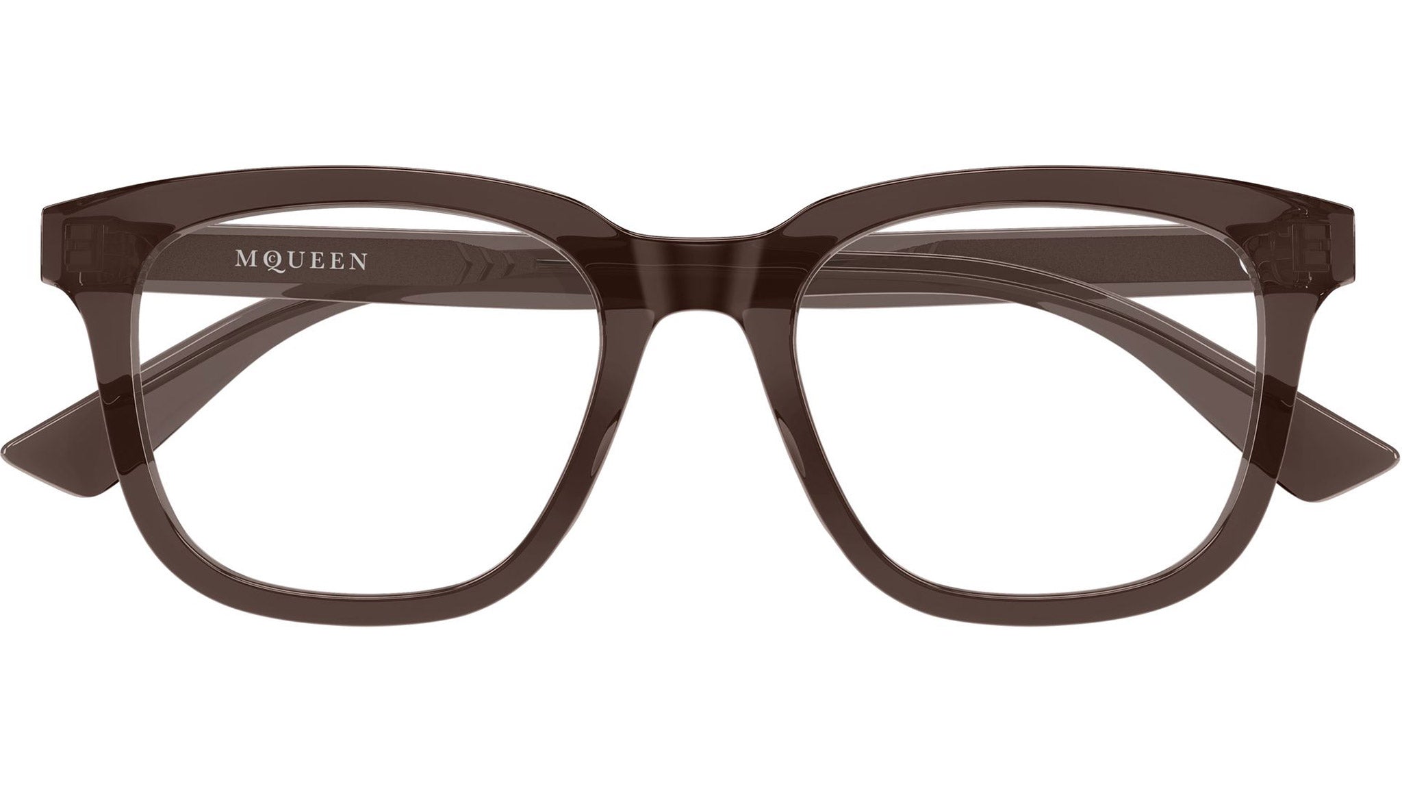 Occhiali da vista Alexander McQueen Logo modello AM0539O in acetato riciclato rettangolari codice colore 005 marrone grigio tortora con aste marrone e lenti demo. Rivenditore autorizzato Alexander McQueen online. Gli occhiali vengono consegnati con custodia e accessori originali e sono coperti dalla garanzia ufficiale di 12 mesi del produttore.