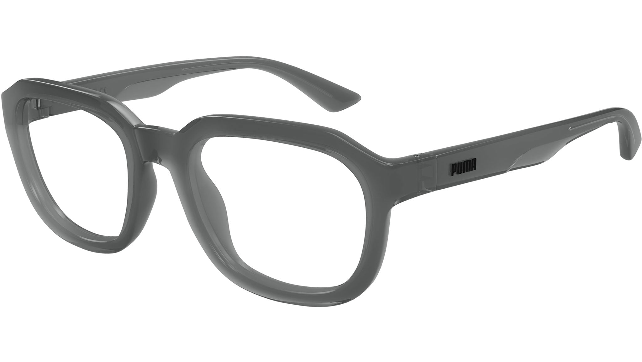 Occhiali da vista Puma Essential modello PU0464O variante colore 001 grigio cool trasparente lucido con lenti demo. Rivenditore autorizzato Puma online. Gli occhiali vengono consegnati con custodia e accessori originali e sono coperti dalla garanzia ufficiale di 12 mesi del produttore.