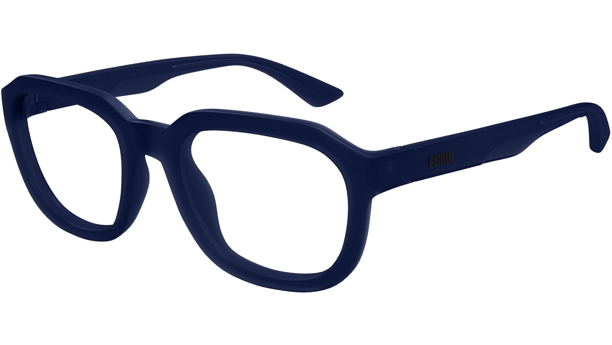 Occhiali da vista Puma Essential modello PU0464O variante colore 002 blu scuro opaco trasparente con lenti demo. Rivenditore autorizzato Puma online. Gli occhiali vengono consegnati con custodia e accessori originali e sono coperti dalla garanzia ufficiale di 12 mesi del produttore.