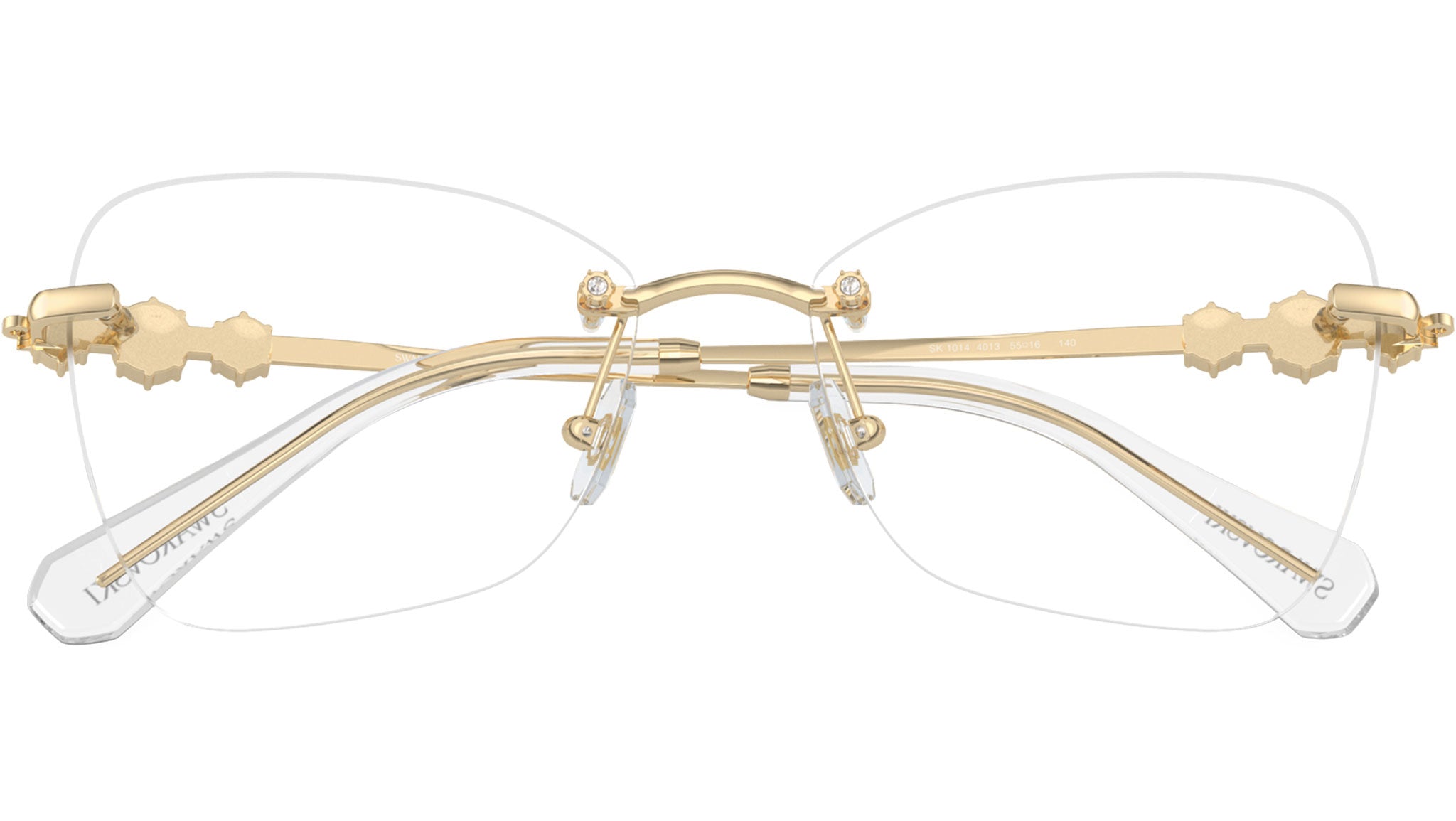 Montatura per occhiali da vista Swarovski donna modello 1014 rimless in metallo oro pallido con lenti demo base 4. Naselli regolabili. Linea: Science of Elegance. Codice brand: 0SK1014. Codice colore: 4013. Rivenditore autorizzato online Swarovski Eyewear. Ogni prodotto Swarovski viene consegnato con astuccio originale e accessori ed è coperto da garanzia del produttore di 12 mesi.