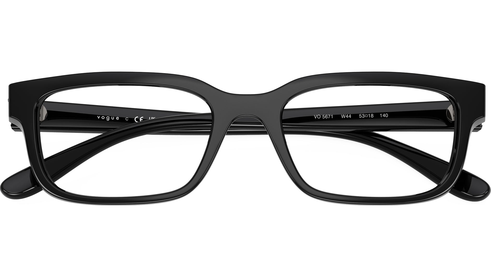 Montatura per occhiali da vista Vogue donna modello VO5671 W44 con montatura rettangolare in nylon nero e lenti demo base 4. Vestibilità a ponte alto. Linea: In Vogue. Codice Brand: 0VO5671. Codice colore: W44. Rivenditore autorizzato online Vogue Eyewear. Ogni prodotto Vogue viene consegnato con astuccio originale e accessori ed è coperto da garanzia del produttore di 12 mesi.