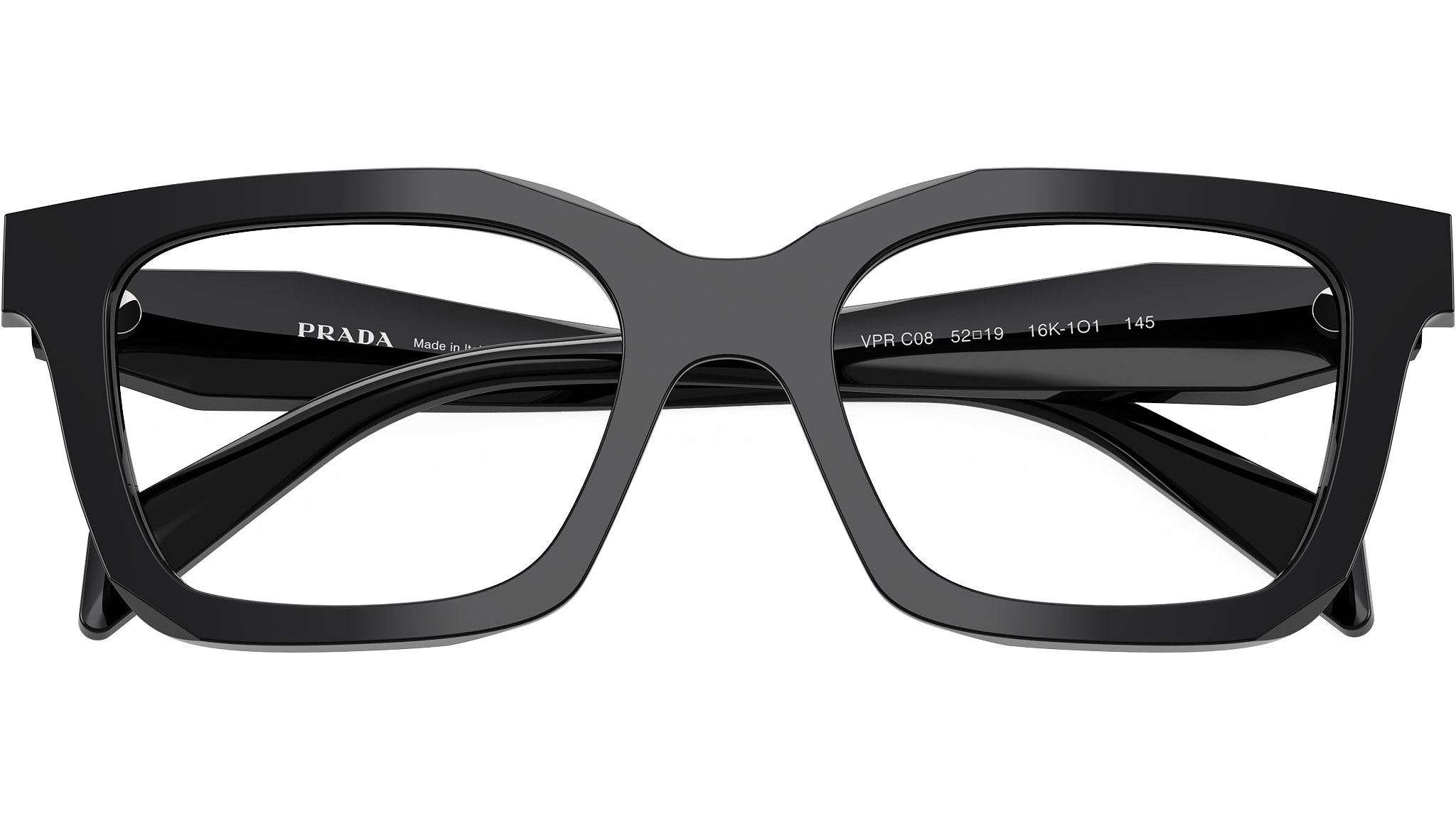 Occhiali da vista Prada PR C08V 16K1O1 donna con montatura geometrica in acetato nero e lenti demo. Vestibilità a ponte alto. Linea: Design. Codice modello: PRC08V. Codice colore: 16K1O1. Made in Italy. Rivenditore autorizzato Prada online. Gli occhiali vengono consegnati con custodia e accessori originali e sono coperti dalla garanzia ufficiale di 12 mesi del produttore.