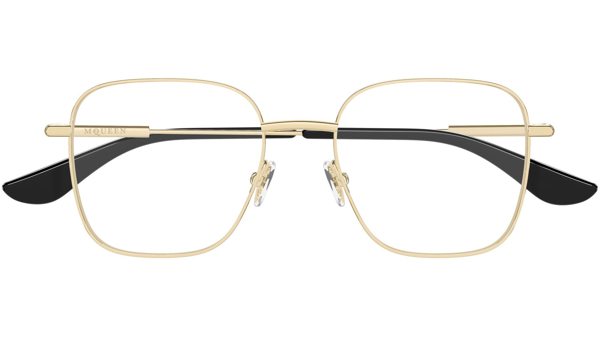 Occhiali da vista Alexander McQueen AM0565O 002 donna con montatura rettangolare in metallo oro chiaro lucido e lenti demo. Linea: T-Bar. Codice modello: AM0565O. Codice colore: 002. Made in Italy. Rivenditore autorizzato Alexander McQueen online. Gli occhiali vengono consegnati con custodia e accessori originali e sono coperti dalla garanzia ufficiale di 12 mesi del produttore.