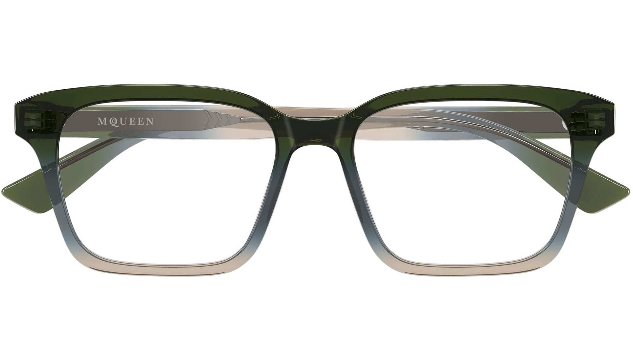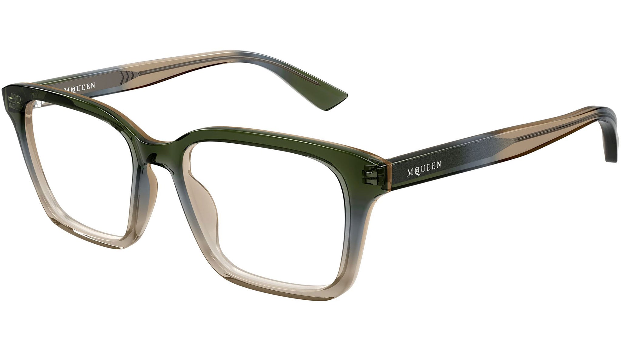 Occhiali da vista Alexander McQueen AM0566O 006 unisex con montatura rettangolare in acetato riciclato verde / blu / marrone chiaro trasparente sfumato lucido e lenti demo. Linea: Logo. Codice modello: AM0566O. Codice colore: 006. Made in Italy. Rivenditore autorizzato Alexander McQueen online. Gli occhiali vengono consegnati con custodia e accessori originali e sono coperti dalla garanzia ufficiale di 12 mesi del produttore.