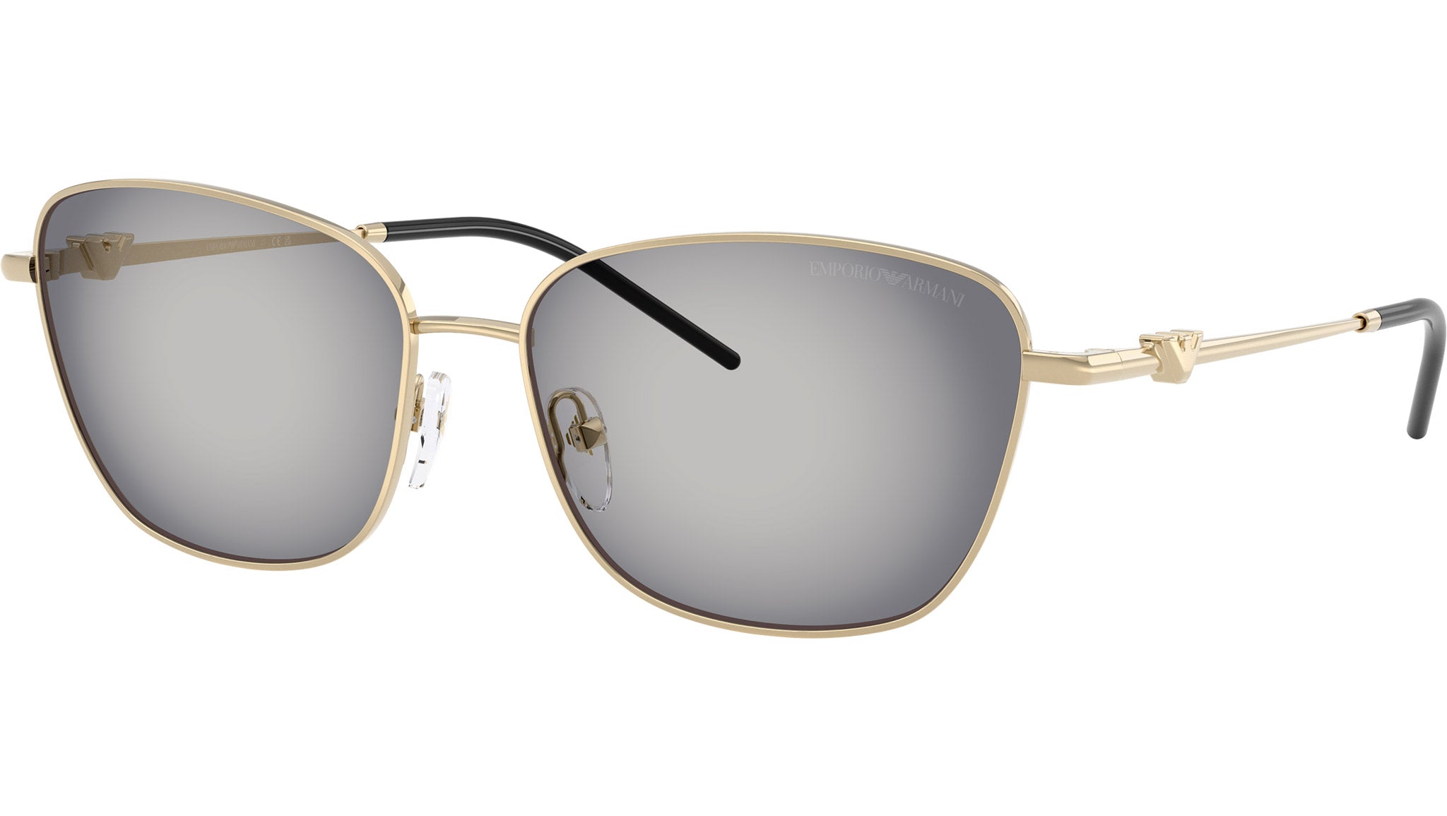 Occhiali da sole Emporio Armani EA2170 30138G con montatura geometrica in metallo oro chiaro lucido e lenti in policarbonato color grigio sfumato nero. Naselli regolabili. Linea: Modern. Codice modello: 0EA2170. Codice colore: 30138G. Rivenditore autorizzato Emporio Armani online. Gli occhiali vengono consegnati con custodia e accessori originali e sono coperti dalla garanzia ufficiale di 12 mesi del produttore.