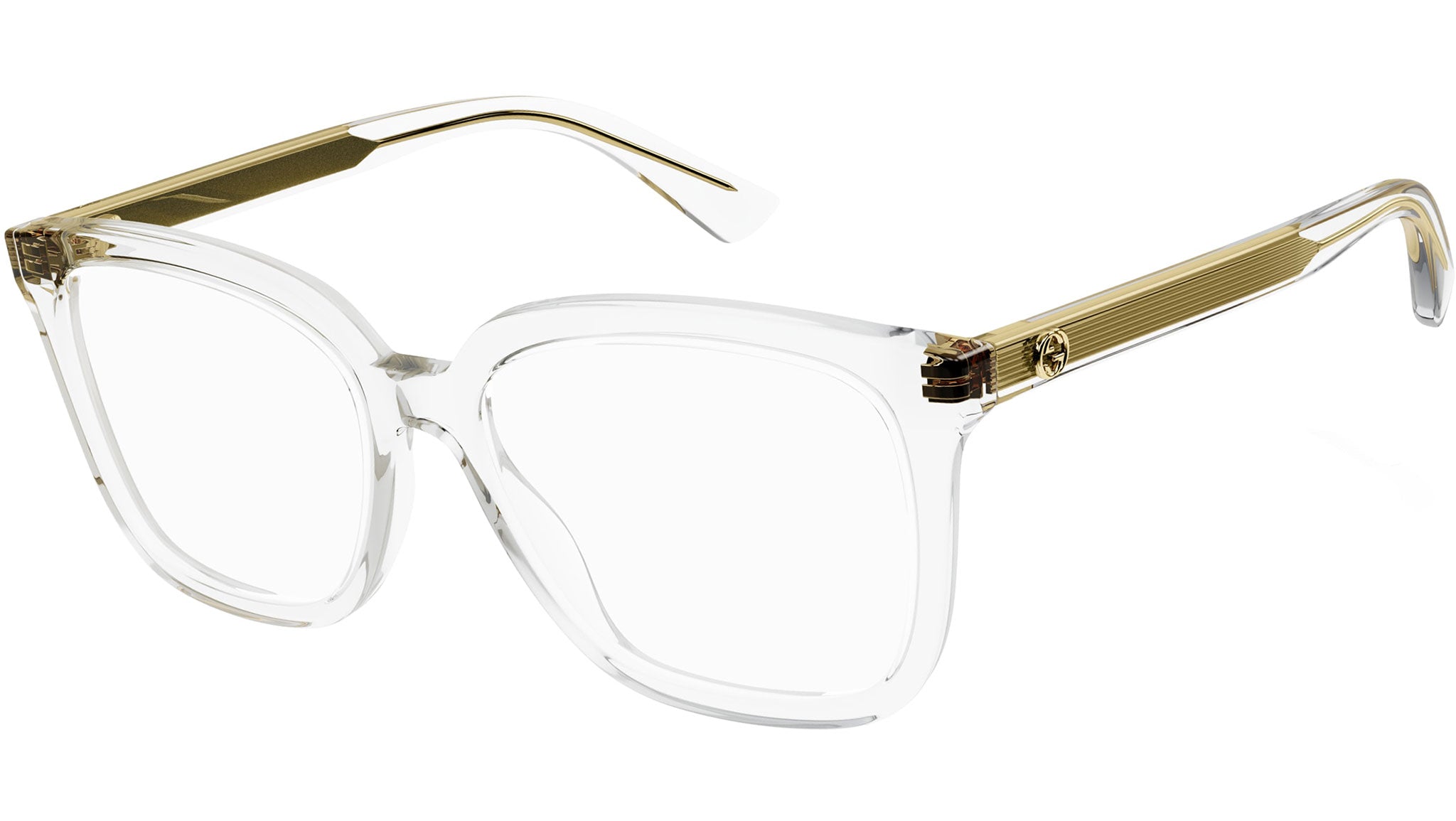 Occhiali da vista Gucci modello GG1319O variante colore 003 cristallo lucido con astine color cristallo trasparente.