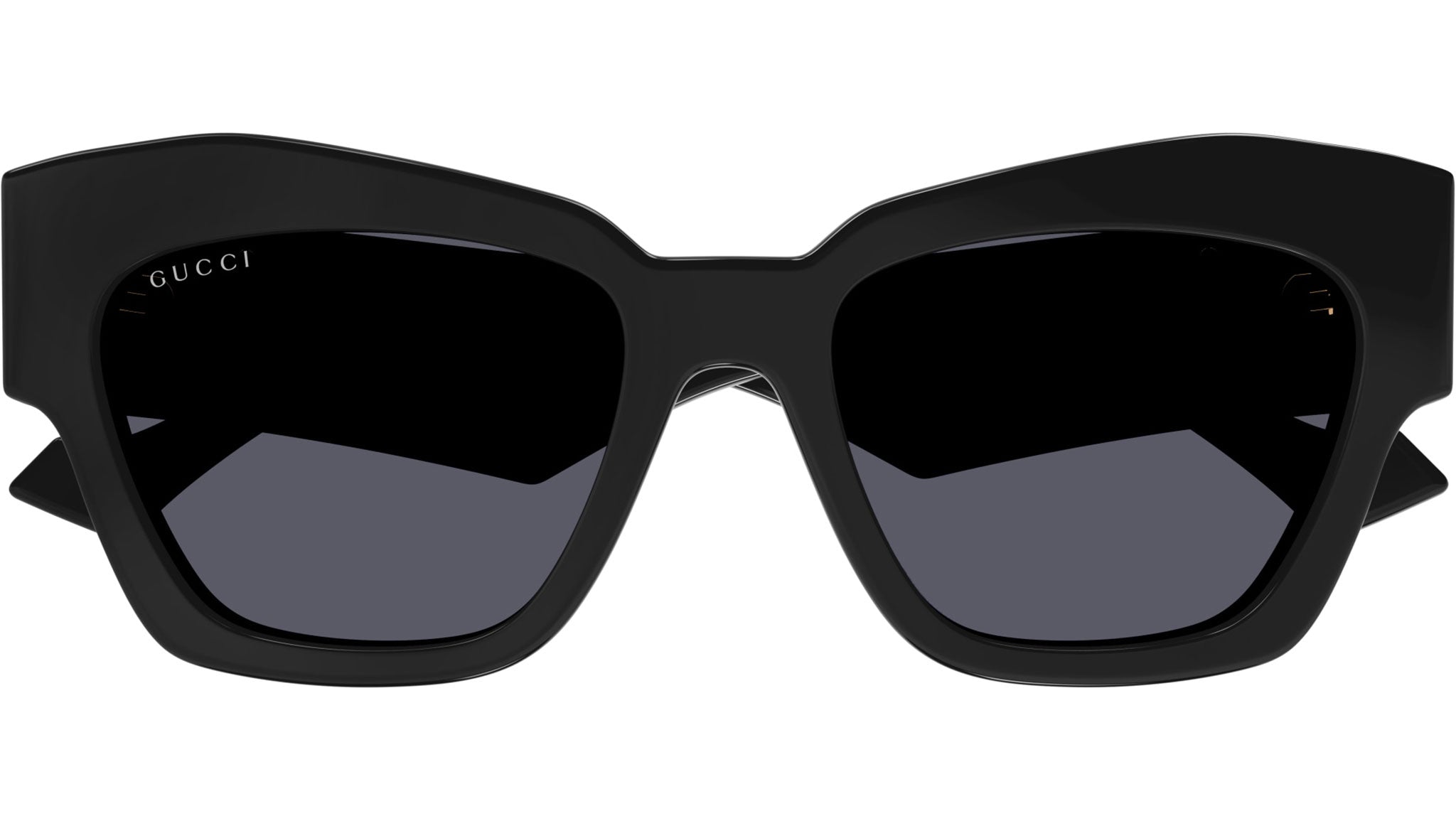 Occhiali da sole Gucci linea GG Logo modello GG1422S 001 in acetato riciclato nero lucido tinta unita con aste color nero e lenti grigio tinta unita.