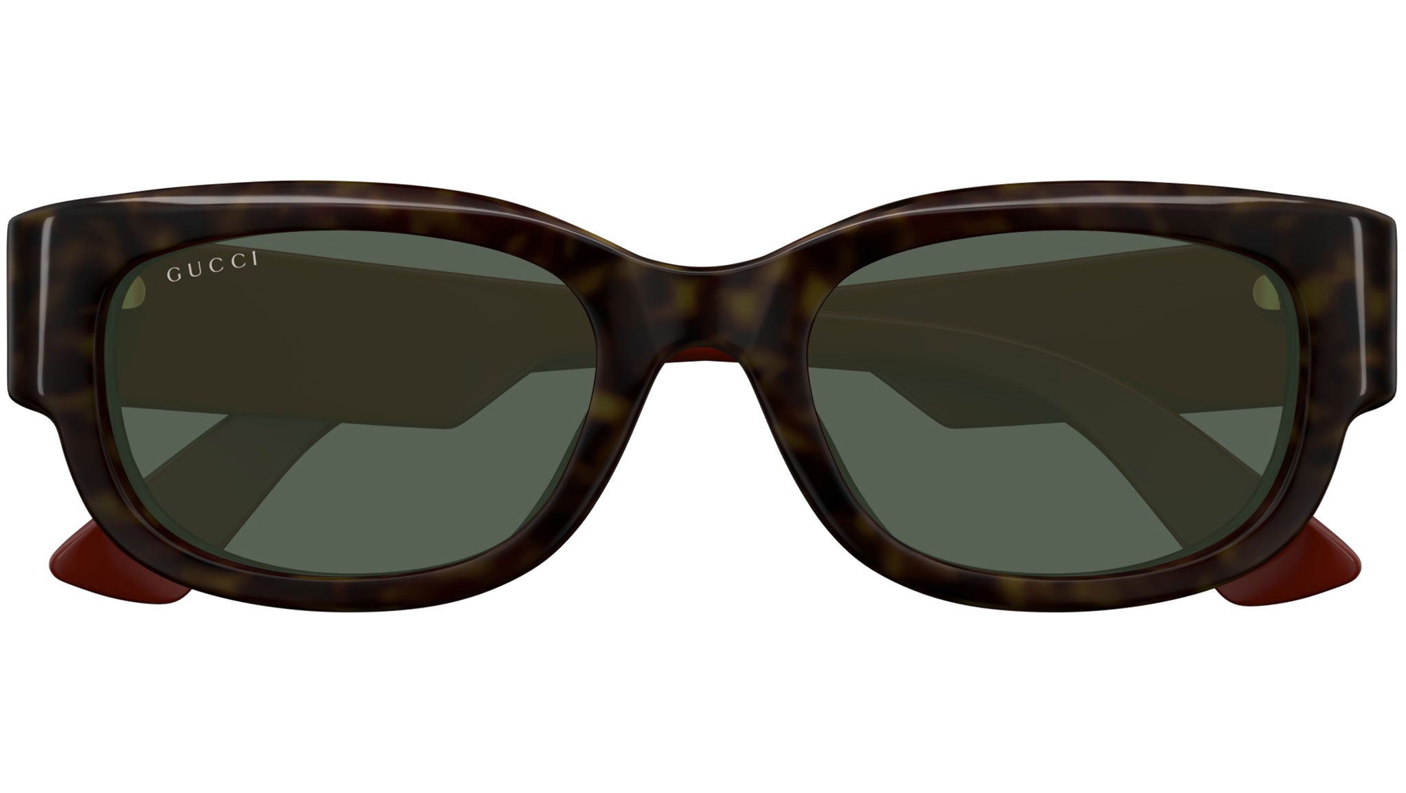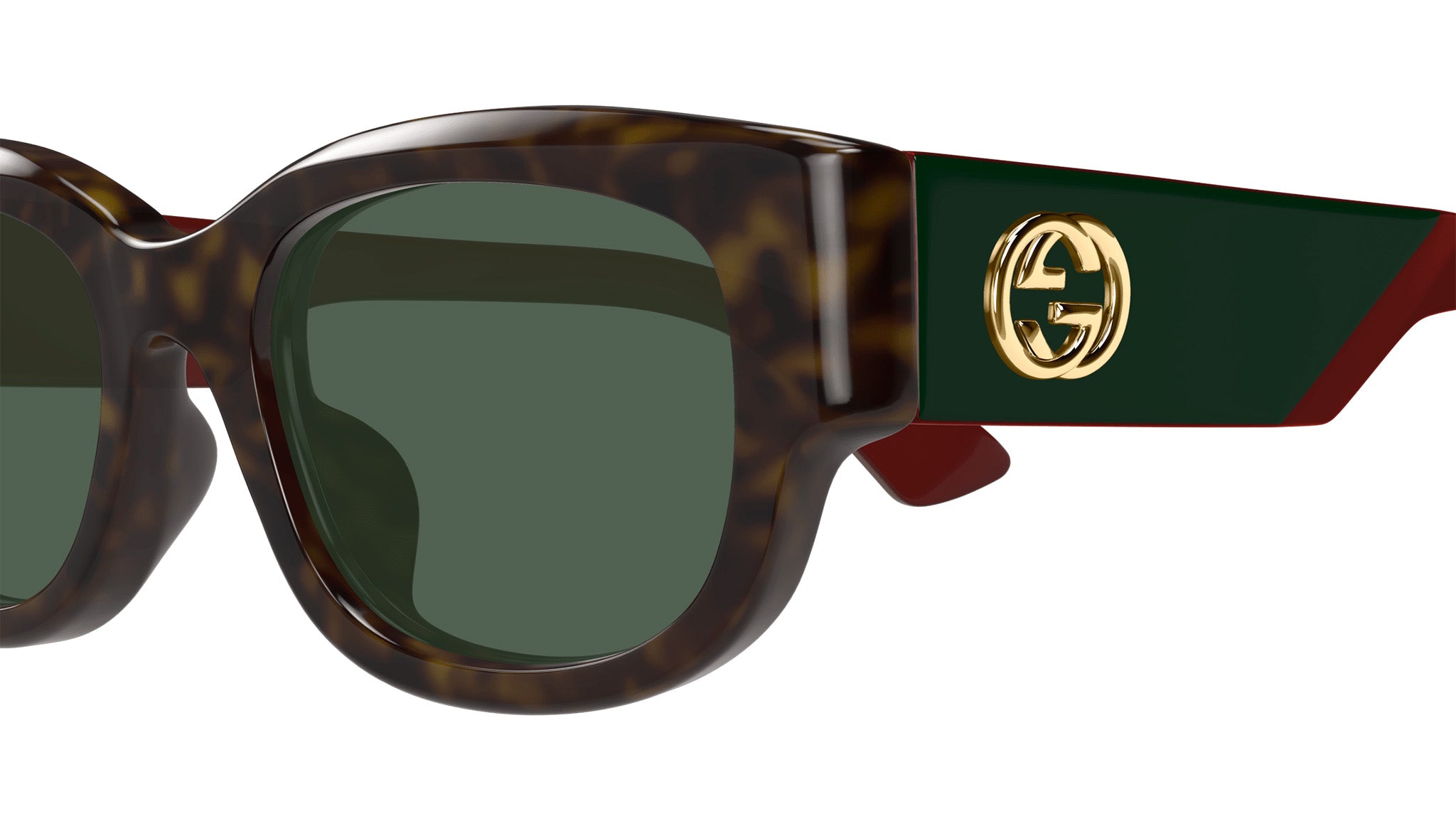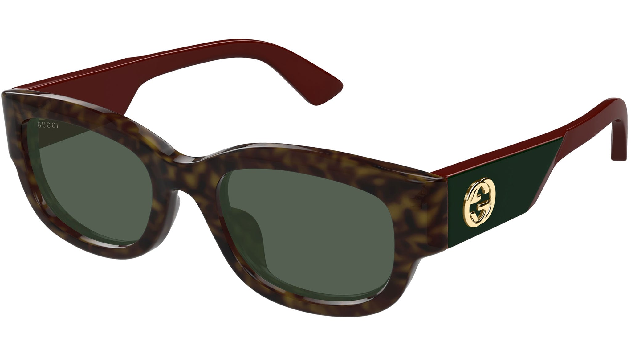 Occhiali da sole Gucci modello GG1667SK linea GG Logo in acetato riciclato forma pantos codice colore 002 tartaruga scuro lucido con aste rosso e lenti verde scuro tinta unita. Rivenditore autorizzato Gucci online. Gli occhiali vengono consegnati con custodia e accessori originali e sono coperti dalla garanzia ufficiale di 12 mesi del produttore.