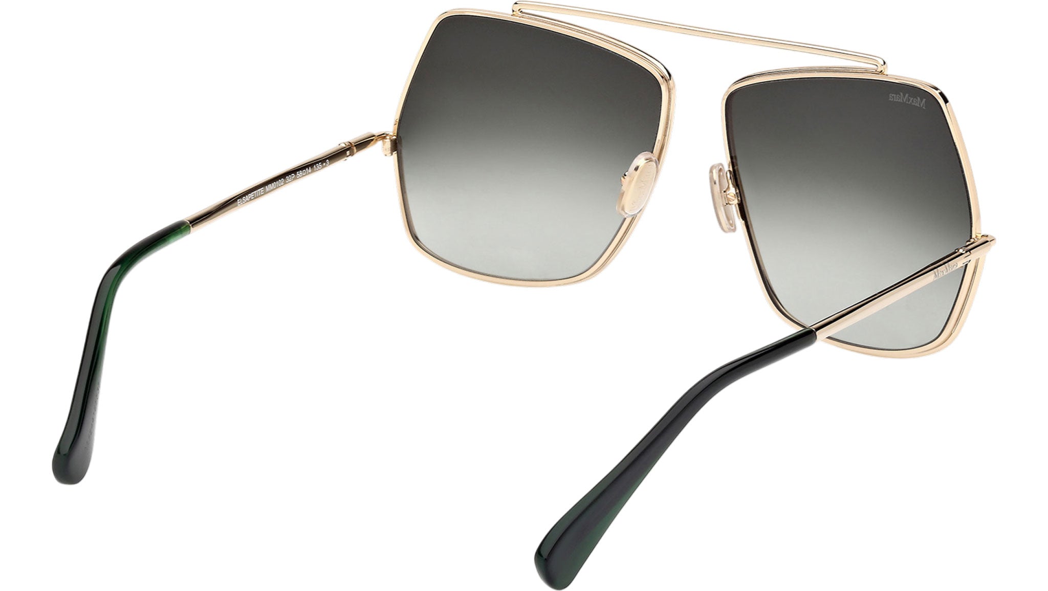 Occhiali da sole Max Mara donna modello Elsapetite MM0102 con montatura geometrica full-rim in metallo oro pallido lucido e lenti color sfumato verde. Made in Italy. Codice Brand: MM 0102. Codice colore: 32P. Rivenditore autorizzato Max Mara online. Gli occhiali vengono consegnati con custodia e accessori originali e sono coperti da garanzia standard di 12 mesi del produttore.