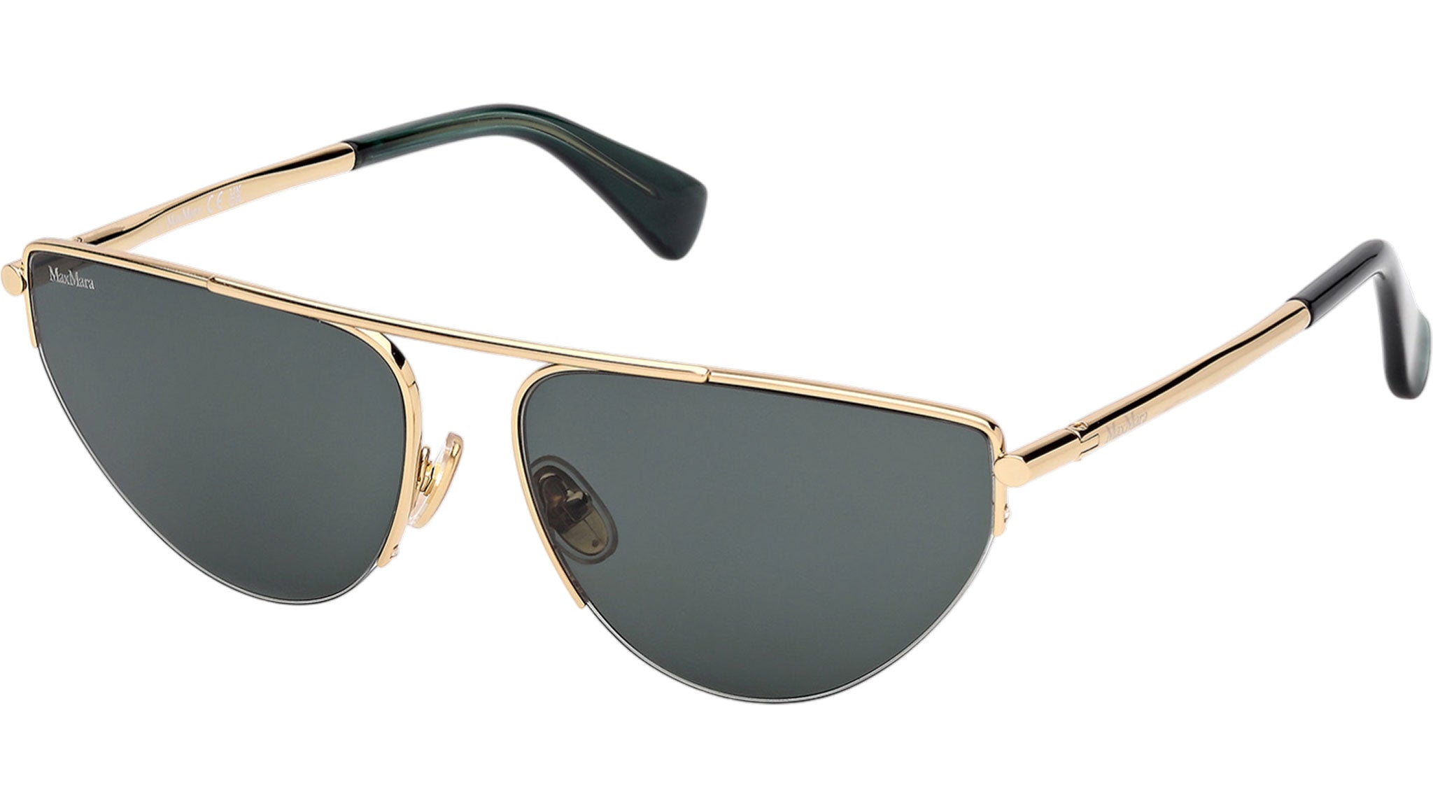 Occhiali da sole Max Mara donna modello Menton4 MM0122 con montatura cat eye full-rim in metallo oro intenso lucido e lenti color verde. Made in Italy. Codice Brand: MM 0122. Codice colore: 30N. Rivenditore autorizzato Max Mara online. Gli occhiali vengono consegnati con custodia e accessori originali e sono coperti da garanzia standard di 12 mesi del produttore.