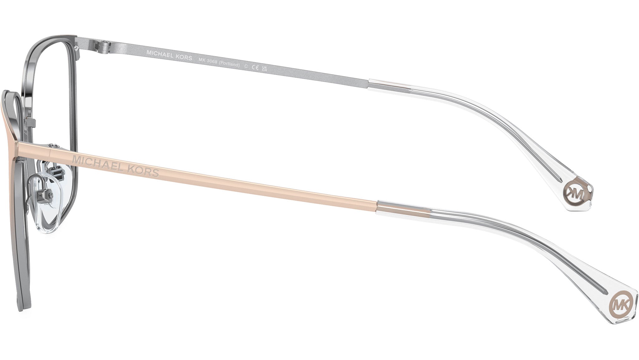 Montatura per occhiali da vista Michael Kors donna modello Portland MK3068 con montatura squadrata in metallo oro rosa e lenti demo. Linea: Sport-Luxe Chic. Codice Brand: 0MK3068. Codice colore: 1108. Rivenditore autorizzato online Michael Kors Eyewear. Ogni prodotto Michael Kors viene consegnato con astuccio originale e accessori ed è coperto da garanzia del produttore di 12 mesi.