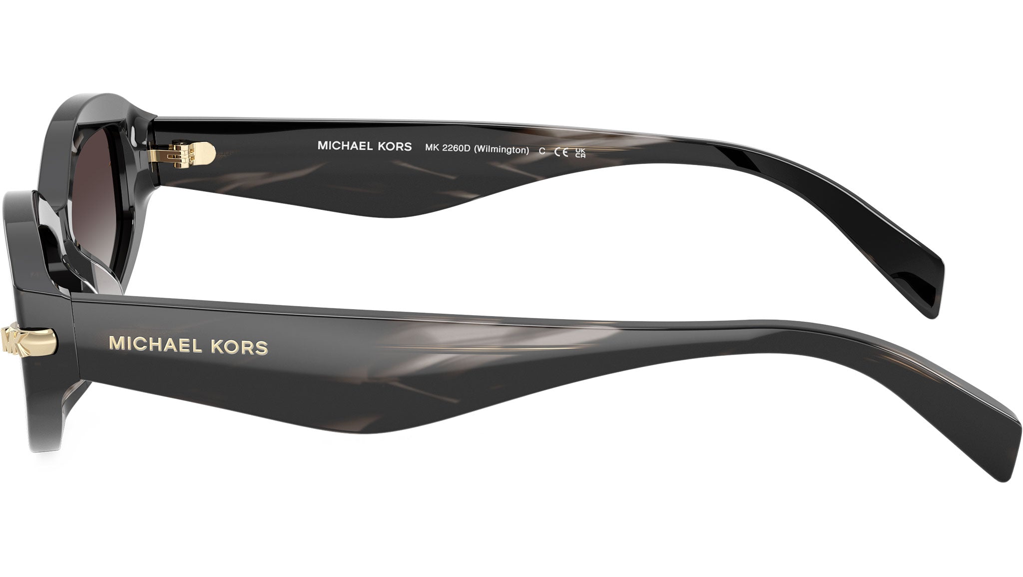 Occhiali da sole Michael Kors donna modello Wilmington MK2260D 40348G con montatura ovale in acetato corno nero e lenti in poliammide grigio chiaro sfumato base 2. Vestibilità a ponte basso. Linea: Glamour. Codice Brand: 0MK2260D. Codice colore: 40348G. Rivenditore autorizzato online Michael Kors Eyewear. Ogni prodotto Michael Kors viene consegnato con astuccio originale e accessori ed è coperto da garanzia del produttore di 12 mesi.