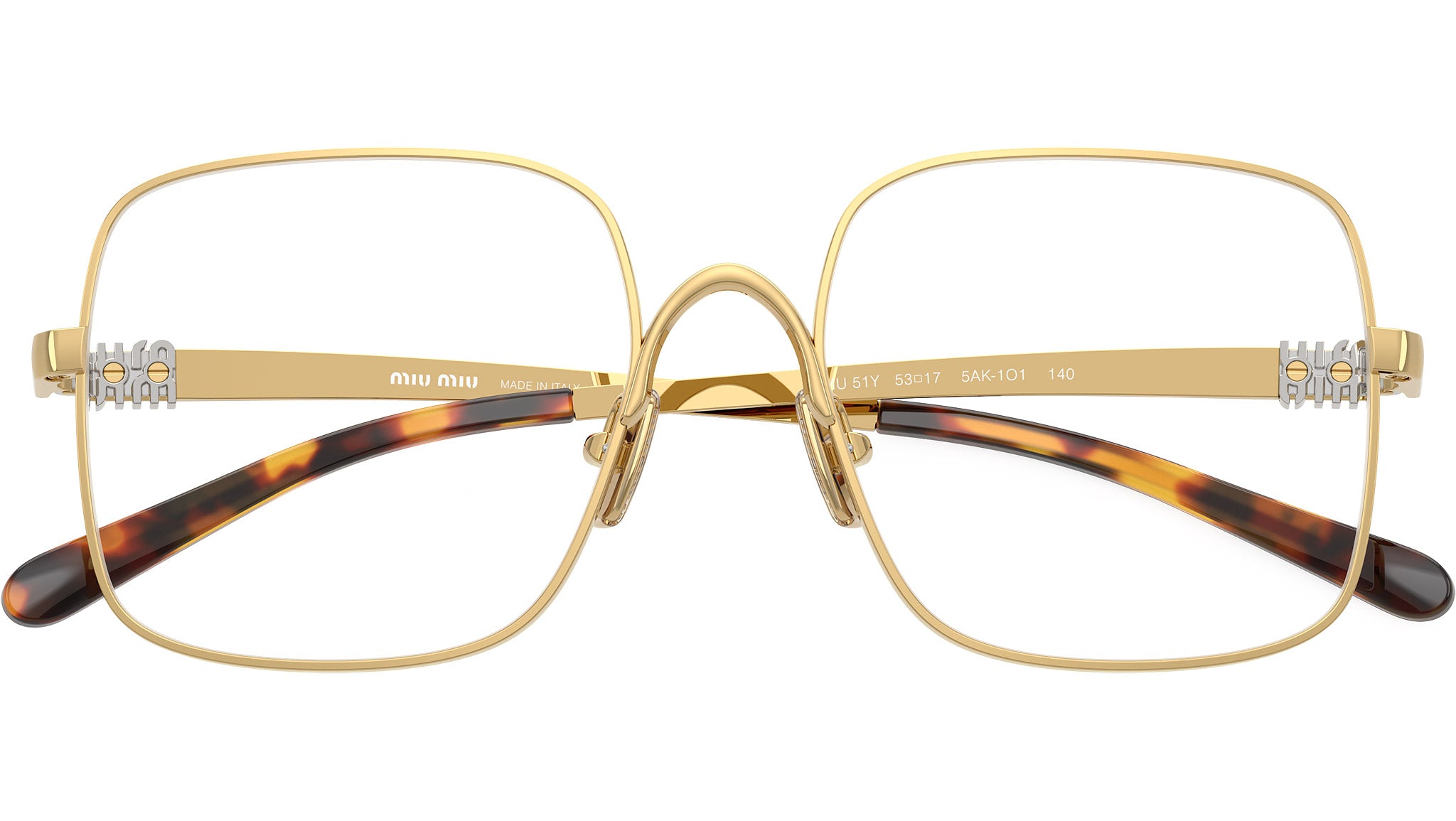 Occhiali da vista Miu Miu MU 51YV 5AK1O1 donna con montatura quadrata in metallo oro e lenti demo. Naselli regolabili. Linea: Main Collection. Codice modello: 0MU 51YV. Codice colore: 5AK1O1. Made in Italy. Rivenditore autorizzato Miu Miu online. Gli occhiali vengono consegnati con custodia e accessori originali e sono coperti dalla garanzia ufficiale di 12 mesi del produttore.