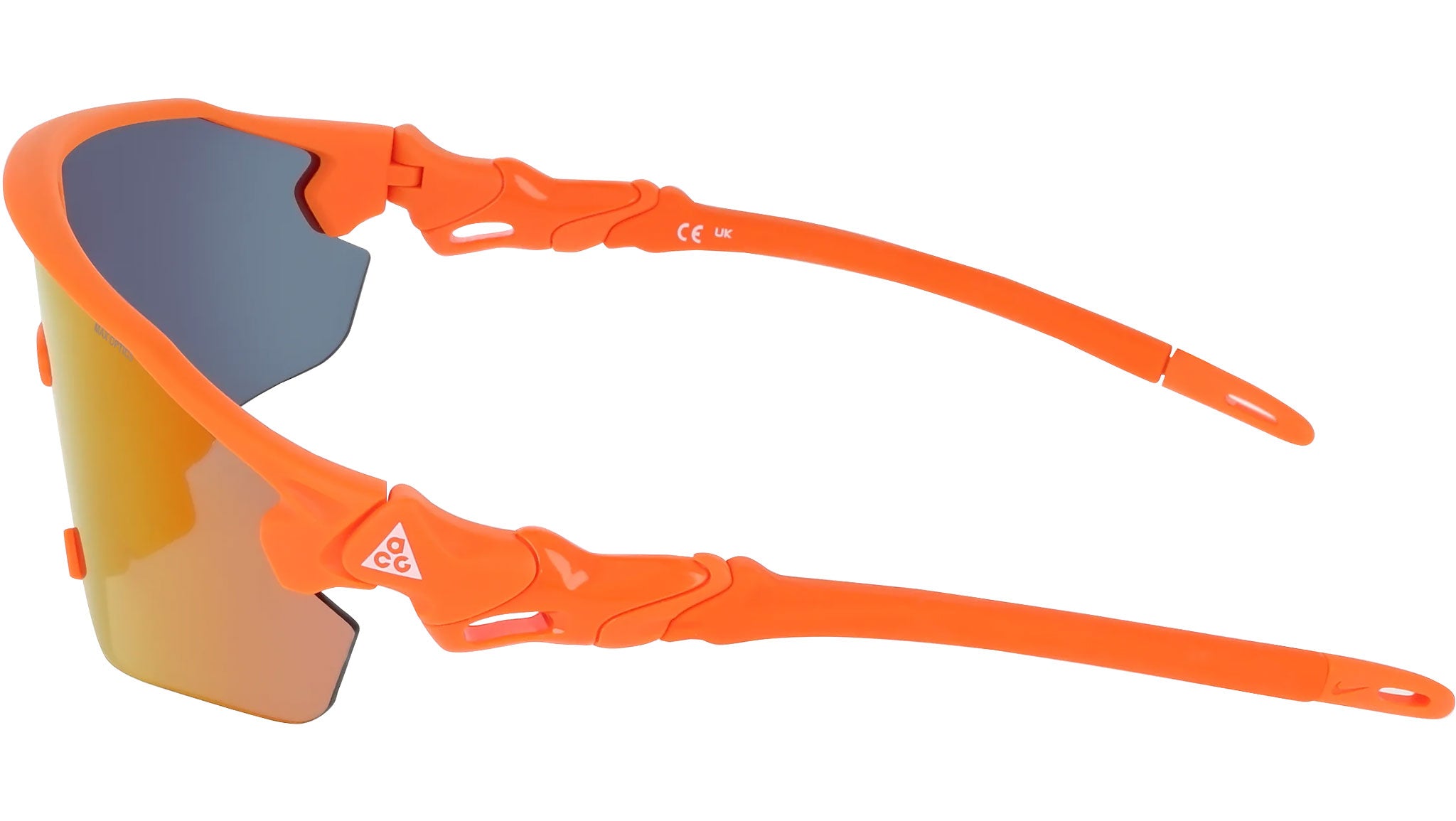 Pensati per ambienti e condizioni impegnative, i Nike ACG Peak E uniscono un design essenziale a una progettazione tecnica orientata alle prestazioni, con una struttura semi-rim leggera e una lente a mascherina con curvatura base 6 che offre copertura media e contribuisce a ridurre la luce laterale. Le lenti Orange Mirrored sono studiate per aumentare il contrasto e migliorare la definizione sul terreno, mentre il sistema Nike Max Optics Pro aiuta a contenere i riflessi e a mantenere una visione più nitida grazie ai rivestimenti idro-oleofobici che respingono acqua e olio, ideali quando il meteo cambia rapidamente. Naselli e terminali asta regolabili in gomma TPE migliorano comfort e grip, con più punti di aggancio per la fascetta per una stabilità extra durante le attività più dinamiche. La montatura a iniezione utilizza materiale derivato da olio di semi di ricino (almeno 40%), per un equilibrio tra resistenza e attenzione ai materiali; completano il prodotto la protezione 100% UVA/UVB e la dotazione di sacchetto/pouch protettivo.