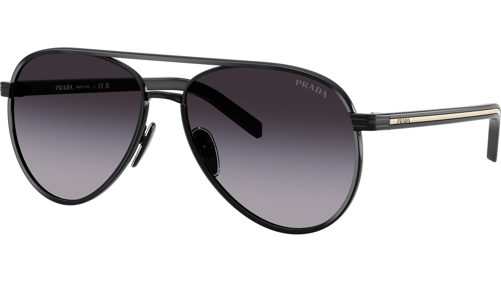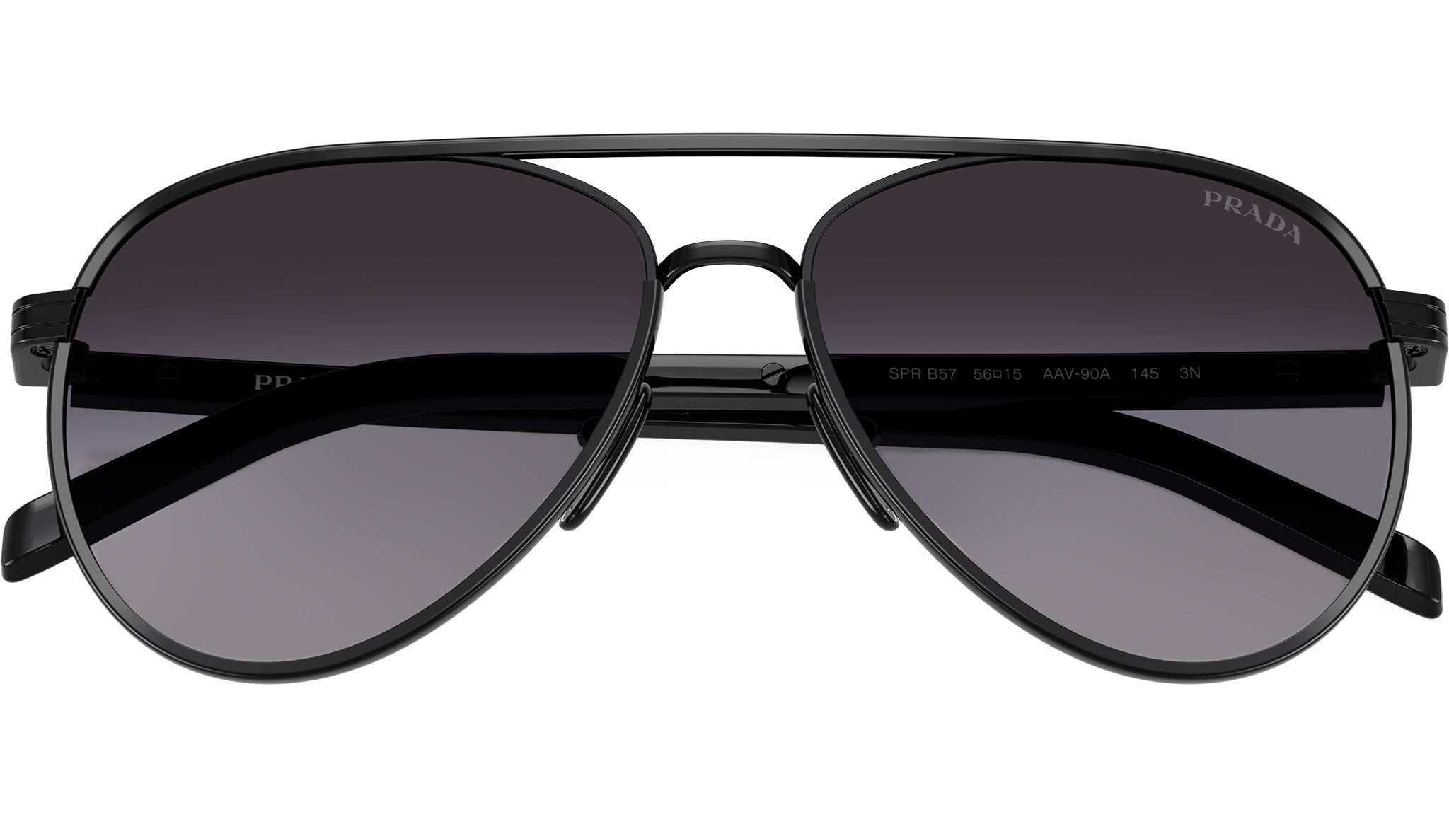 Occhiali da sole Prada PR B57S AAV90A donna con montatura aviatore in acciaio nero e lenti in bio poliammide color grigio sfumato. Naselli regolabili. Linea: Signature. Codice modello: PRB57S. Codice colore: AAV90A. Made in Italy. Rivenditore autorizzato Prada online. Gli occhiali vengono consegnati con custodia e accessori originali e sono coperti dalla garanzia ufficiale di 12 mesi del produttore.