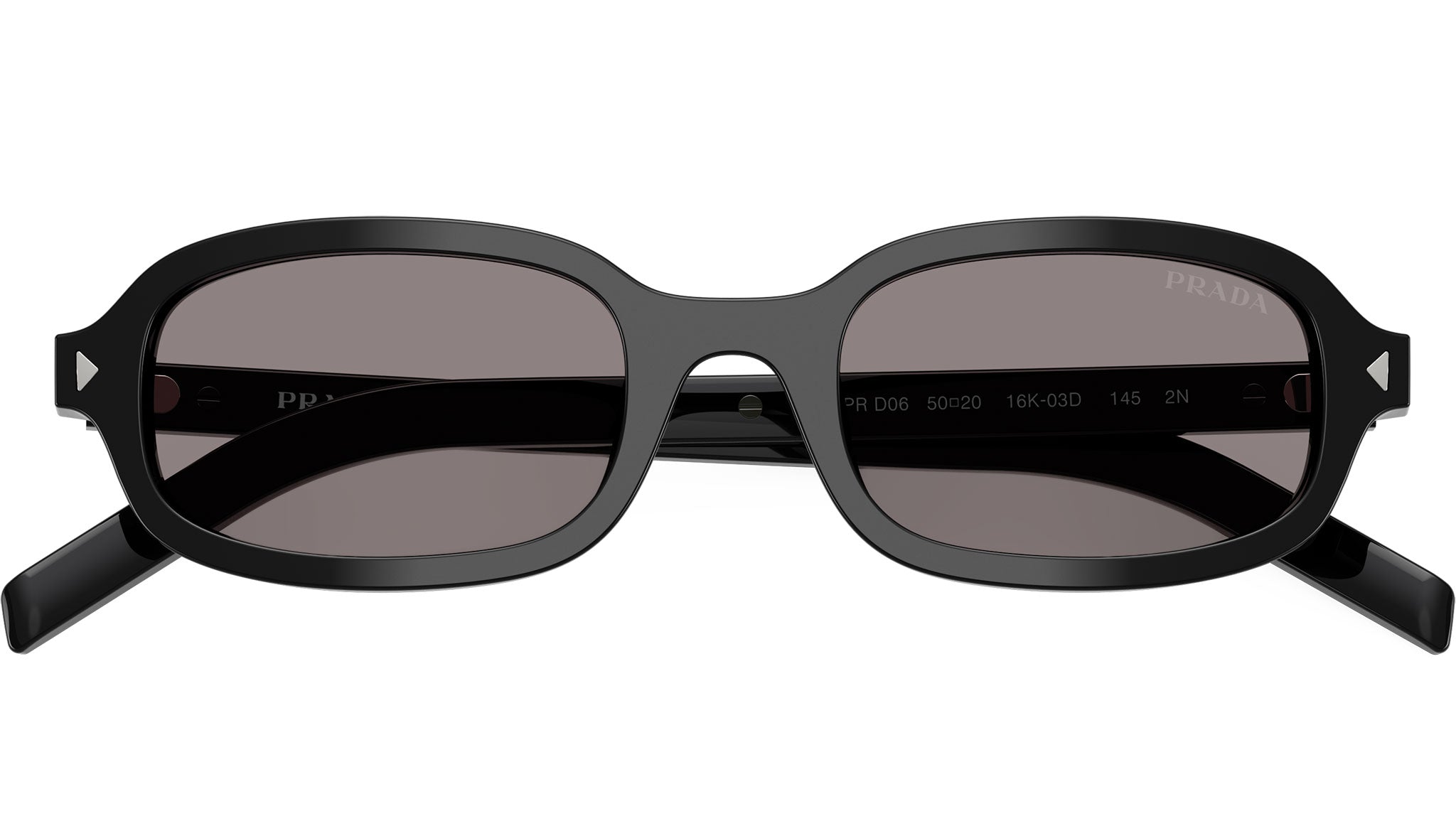 Occhiali da sole Prada PR D06S 16K03D donna con montatura ovale in acetato nero e lenti in cristallo color grigio. Vestibilità a ponte alto. Linea: Heritage. Codice modello: PRD06S. Codice colore: 16K03D. Made in Italy. Rivenditore autorizzato Prada online. Gli occhiali vengono consegnati con custodia e accessori originali e sono coperti dalla garanzia ufficiale di 12 mesi del produttore.