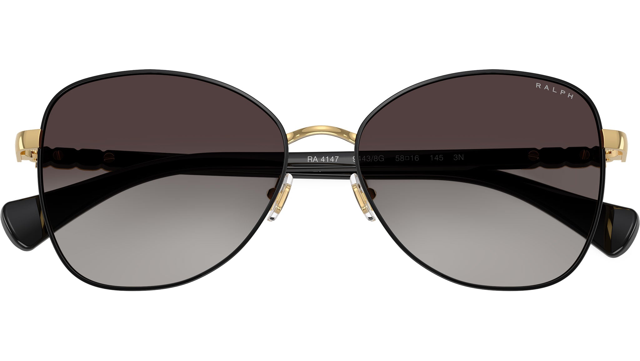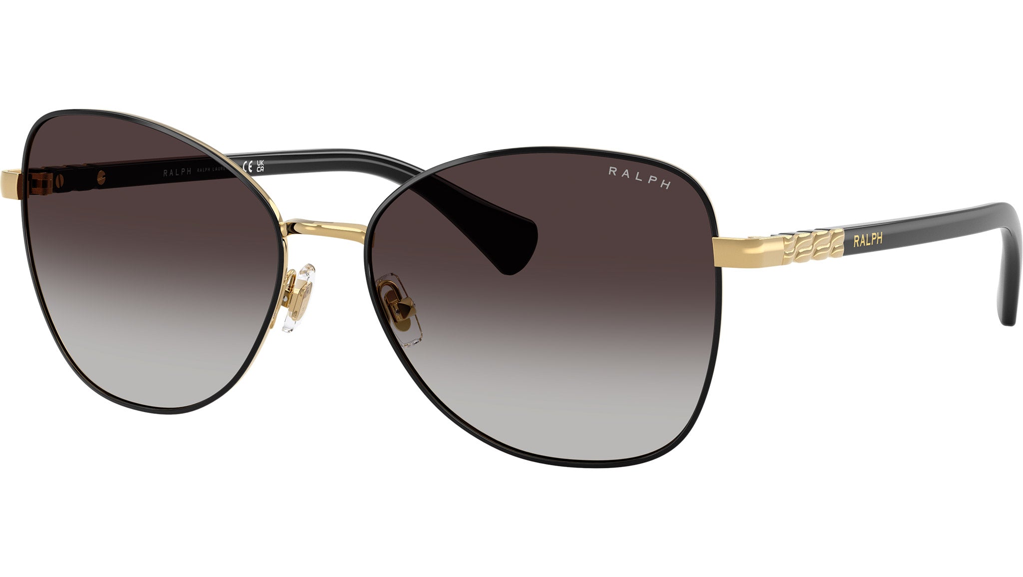 Occhiali da sole Ralph RA4147 94438G con montatura butterfly in metallo nero lucido e lenti in poliammide color sfumato grigio. Naselli regolabili. Linea: Glamour. Codice modello: 0RA4147. Codice colore: 94438G. Rivenditore autorizzato Ralph online. Gli occhiali vengono consegnati con custodia e accessori originali e sono coperti dalla garanzia ufficiale di 12 mesi del produttore.
