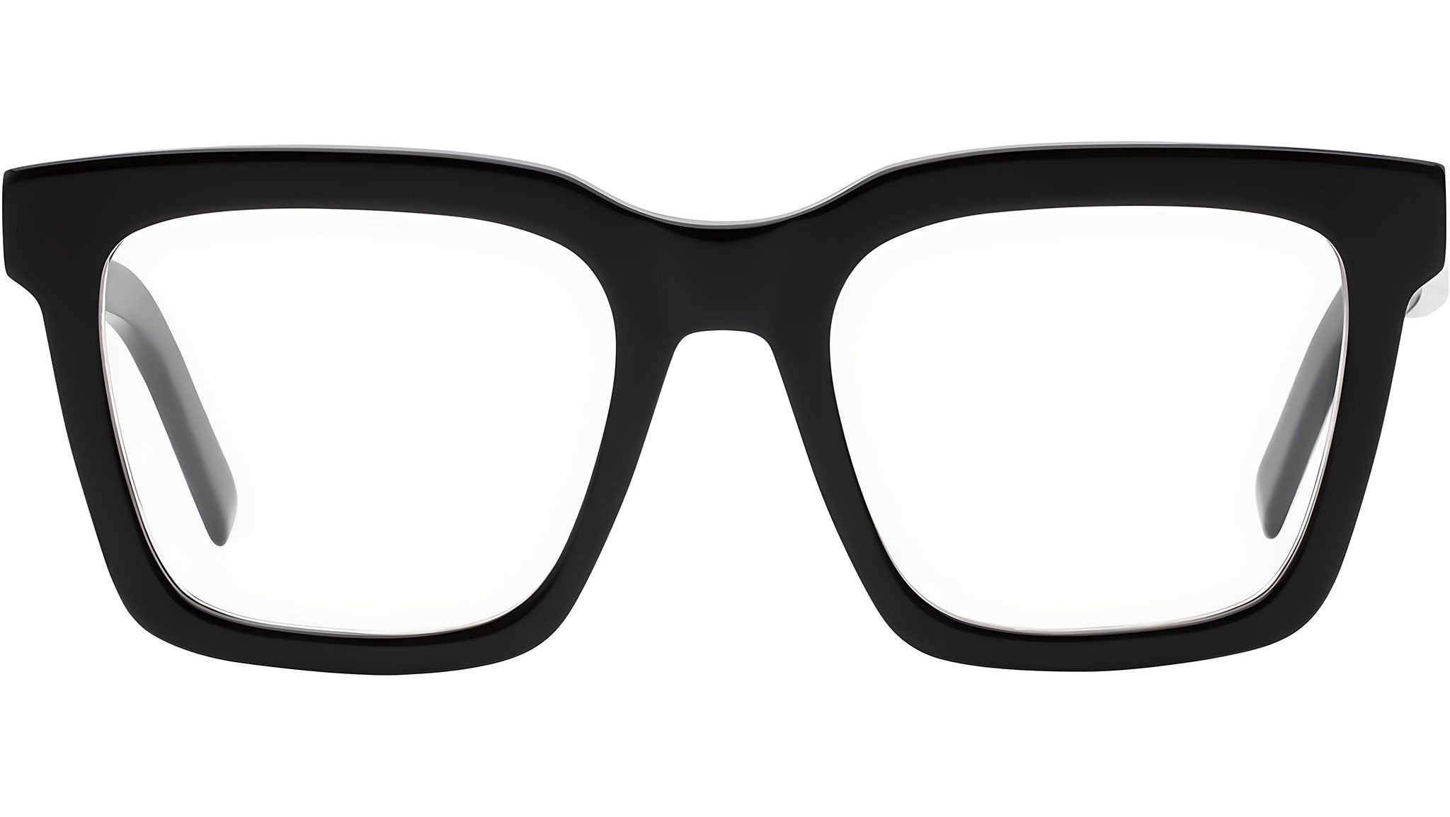 Designed for Fall/Winter 2021 collection, Aalto Optical is a tall, oversized acetate frame for daily use. The model features thick rims and square lenses, with a lowered nose bridge and curved upper line. Its thick design has been chiseled on the sides for a lightweight yet sturdy fit. This version comes in black acetate. Prescription lenses not included. Sizes: R. Lens Width: 52 mm. Frame Front: 146 mm. Frame Side: 145 mm. Product Code Size R: QBK.