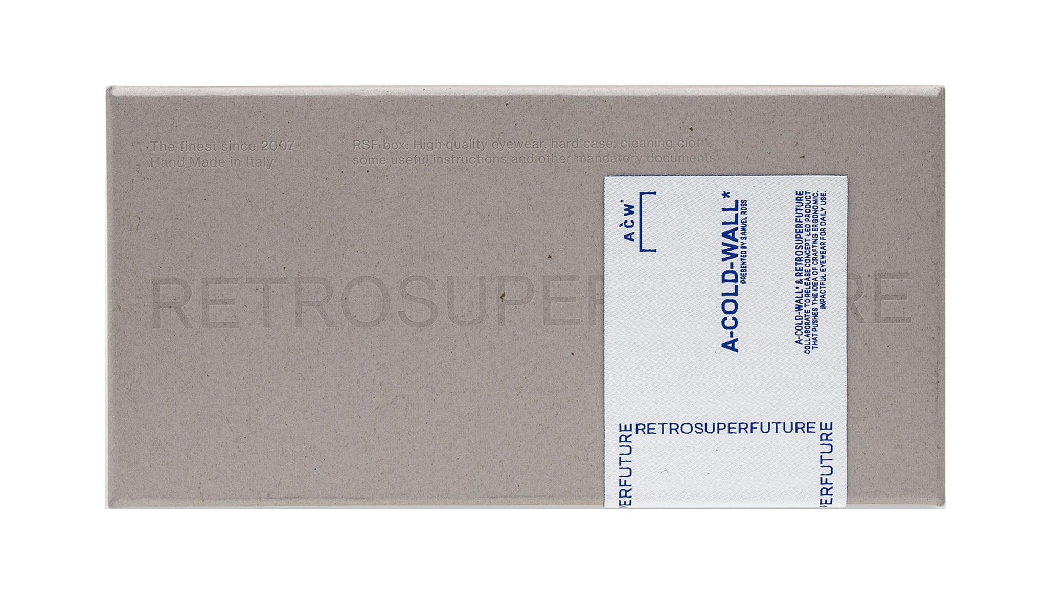 Designed for A Cold Wall, this version of America captures the architectural and conceptual approach to style defined by the iconic British brand. The model fuses futuristic visions, with its laser-engraved detailing, with a more ascetic approach to style. America’s geometric design was matched with a crystal acetate front and tone-on-tone lenses in orange. The temples, on the other hand, feature different layers of acetate finishes: a laser-engraved grid layer, a crystal layer and a faded orange layer. Sizes: R Lens Width: 52 mm. Frame Front: Frame Side: 145 mm. Product Code Size R: 2O5