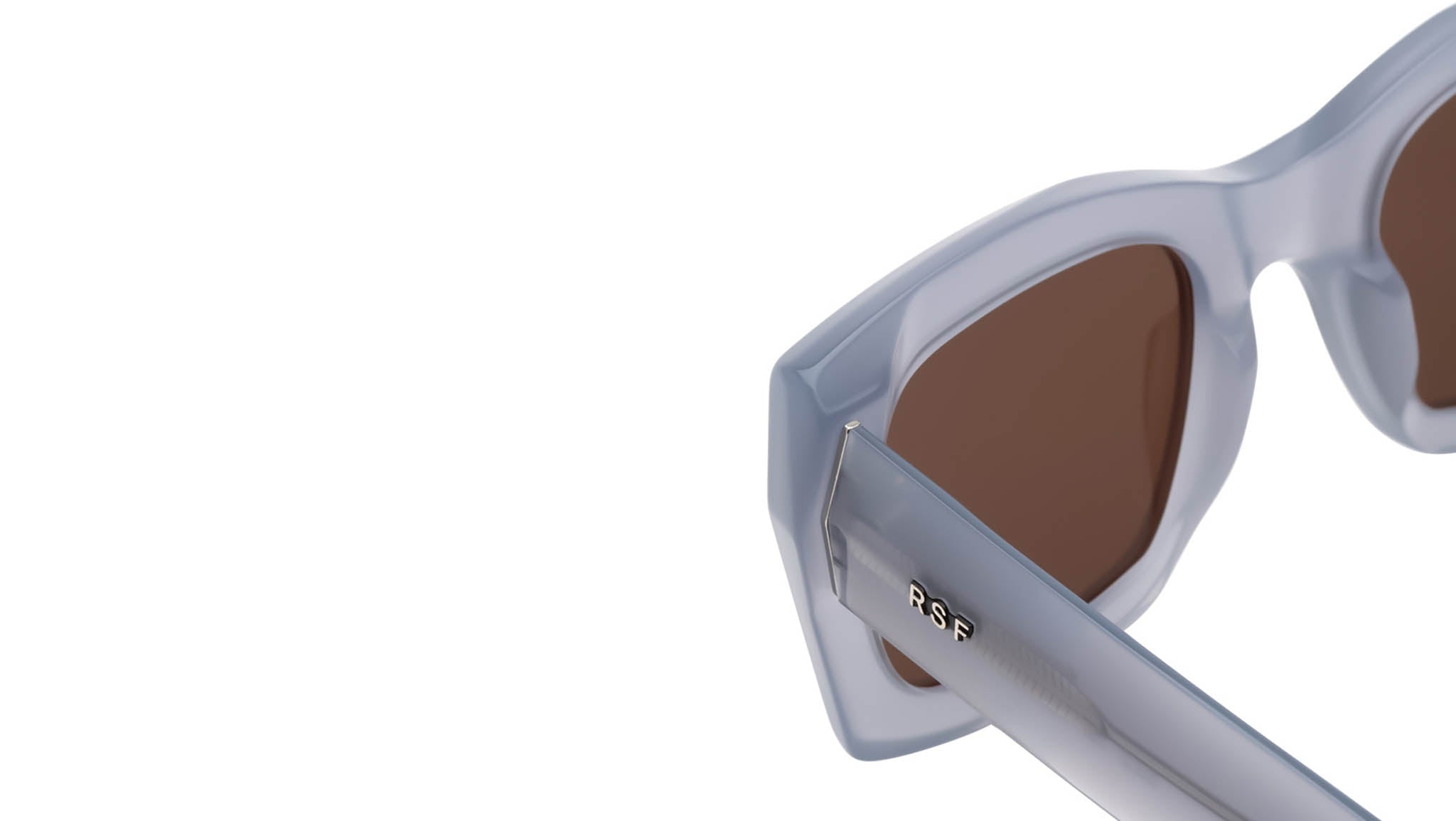 Komori is an oversized, sturdy acetate frame with a unique hyper-geometric design that extends through to the temples. Its soft denim blue acetate frame is paired with distinctive brown lenses for a versatile statement piece. Handcrafted in Italy. Sizes: R. Lens Width: 52 mm. Frame Front: Frame Side: 145 mm. Product Code Size R: 5Z2.