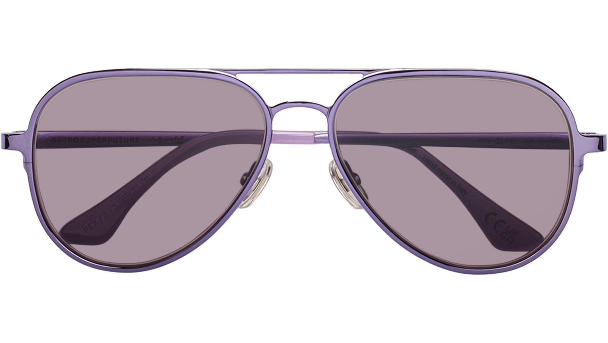 Designed in collaboration with The Andy Warhol Foundation for the Visual Arts, the Legacy is a unique reinterpretation of the iconic aviator frame worn by Warhol in a series of self-portraits created in 1986. The sunglasses feature an essential, less-is-more design with a lightweight custom metal construction encasing pear-shaped Barberini tempered glass lenses. Celebrating Warhol’s unique status and identity, the model comes with purple mineral tempered glass lenses by Barberini and a matching metal finish. Sizes: R Lens Width: 58 mm. Frame Front: Frame Side: 145 mm. Product Code Size R: PFX